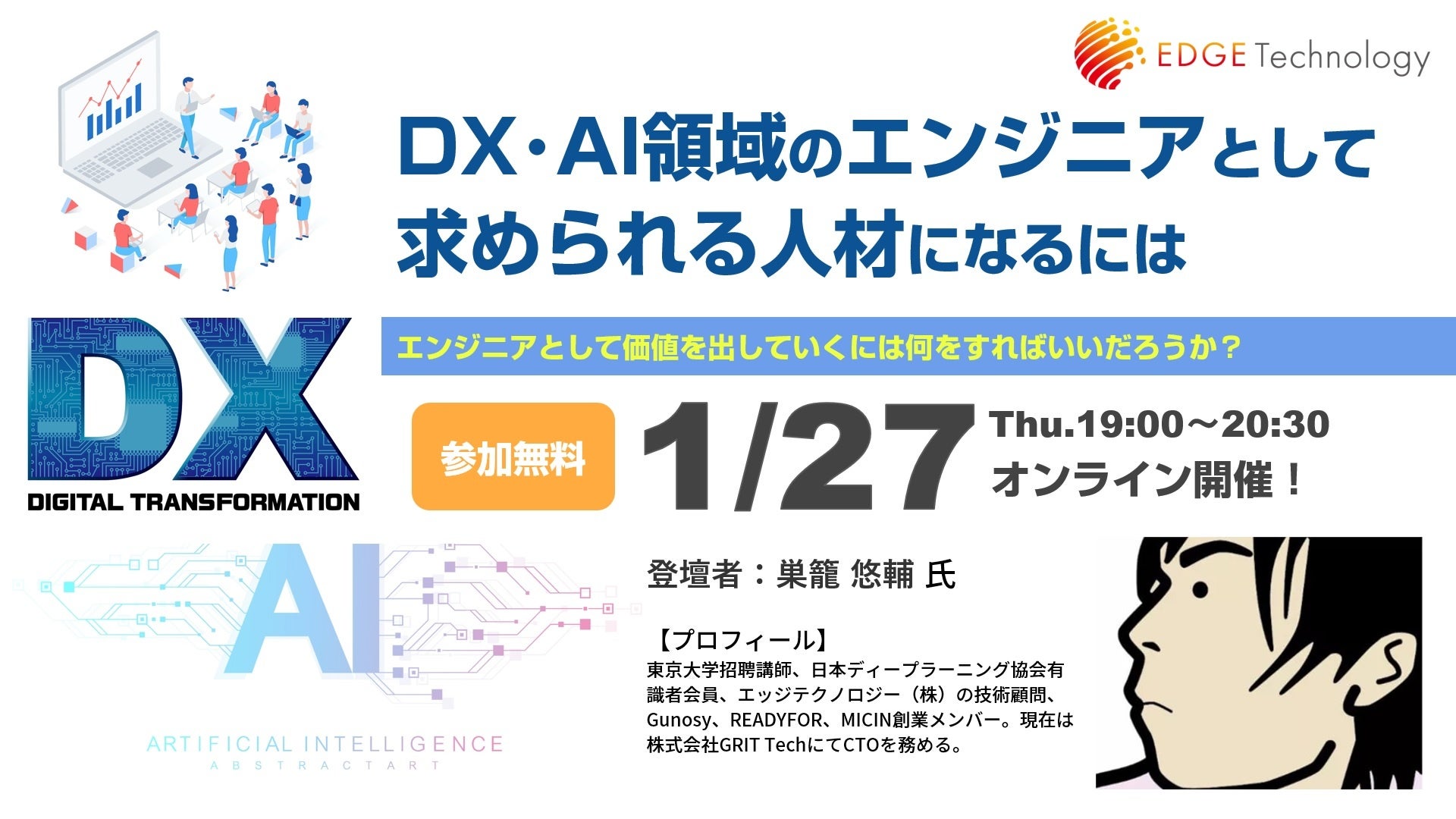 エッジテクノロジー(AIジョブカレ)が巣籠悠輔氏によるキャリアアップセミナー「DX・AI領域のエンジニアとして求められる人材になるためのキャリア形成」を無料開催