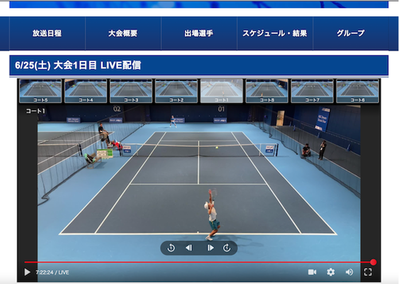 視聴者は8コートで同時進行している試合の映像を自由に切り替え、好きなコートの映像を選択し視聴する事ができます。(映像切替時にはノーバッファリングで瞬時に切り替わり、アングル毎の音声も切り替わります)