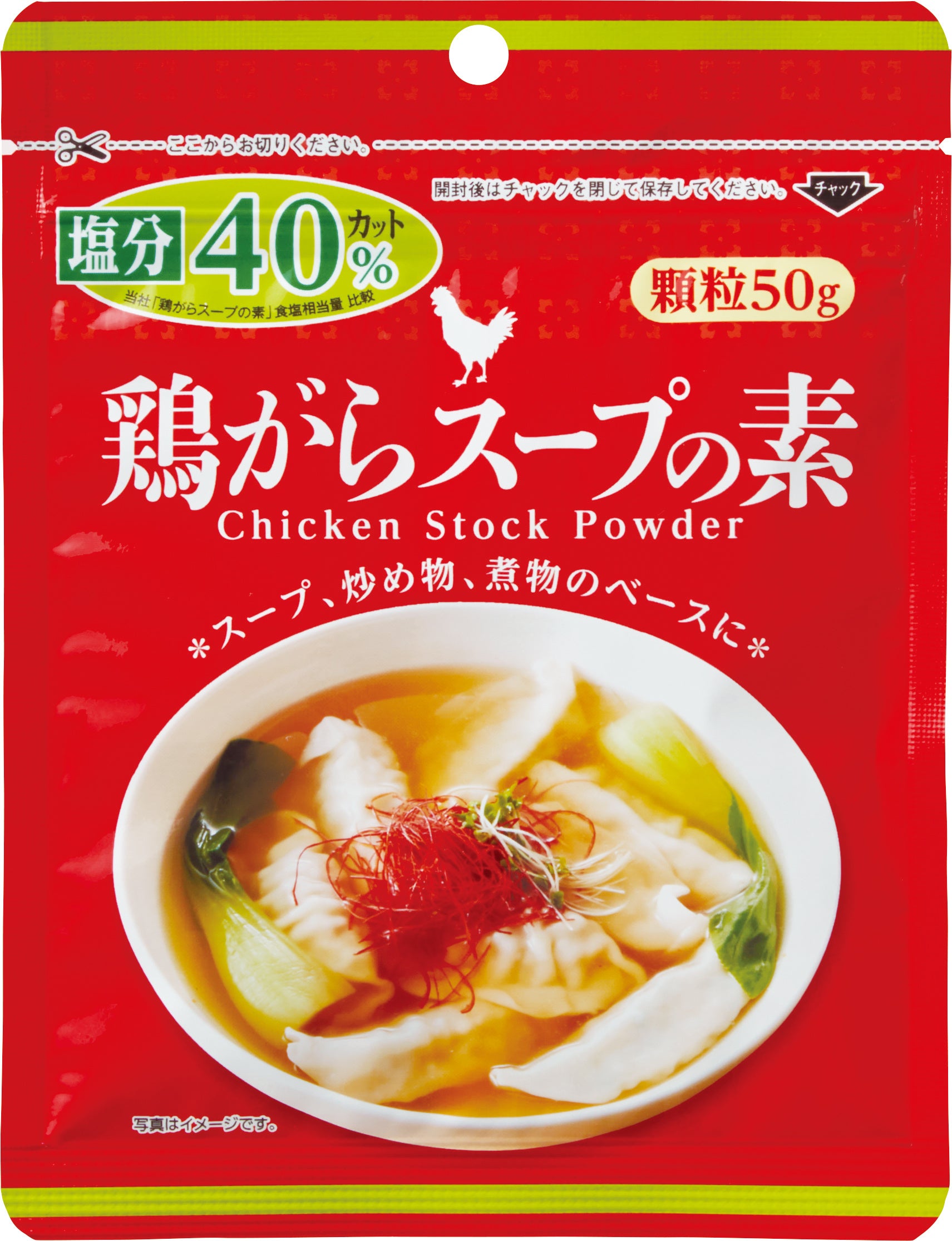 毎日使いやすい 鶏がらスープの素「鶏がらスープの素 塩分40%カット50g / 大容量250g」を新発売!