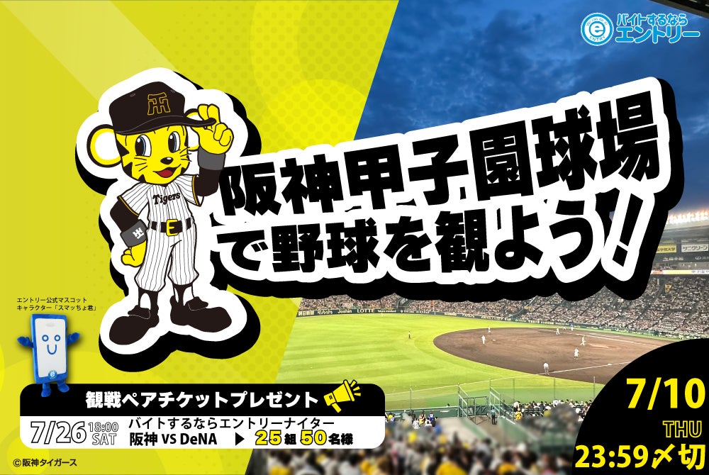 2025年7月26日(土)に開催される阪神タイガースvs横浜DeNAベイスターズ戦を『バイトするならエントリーナイター』として開催します。