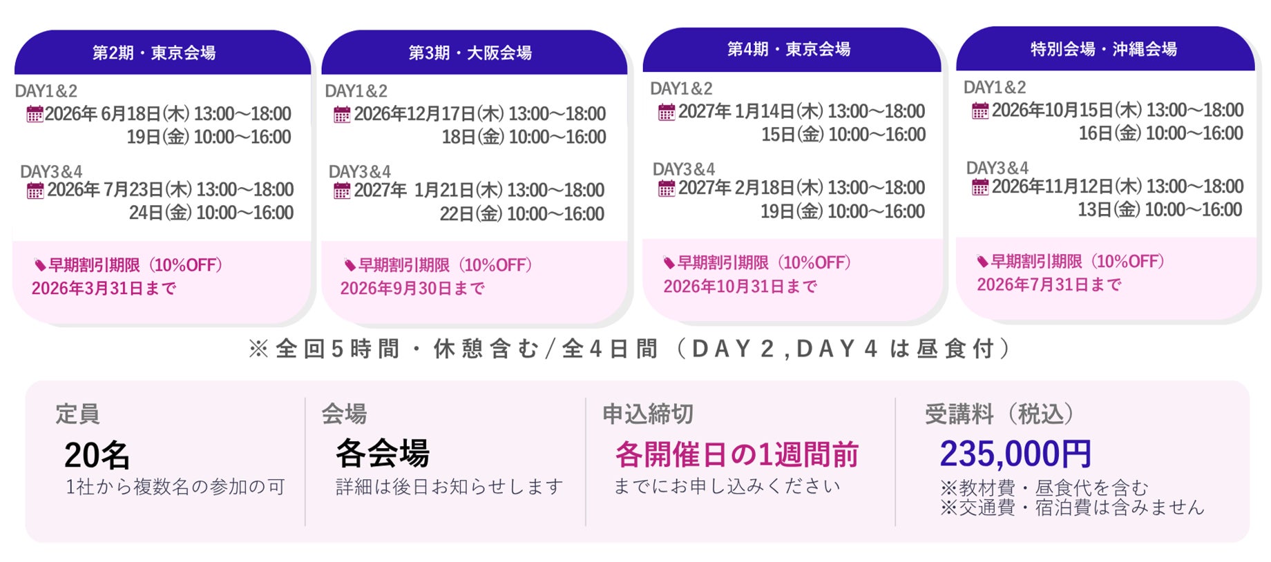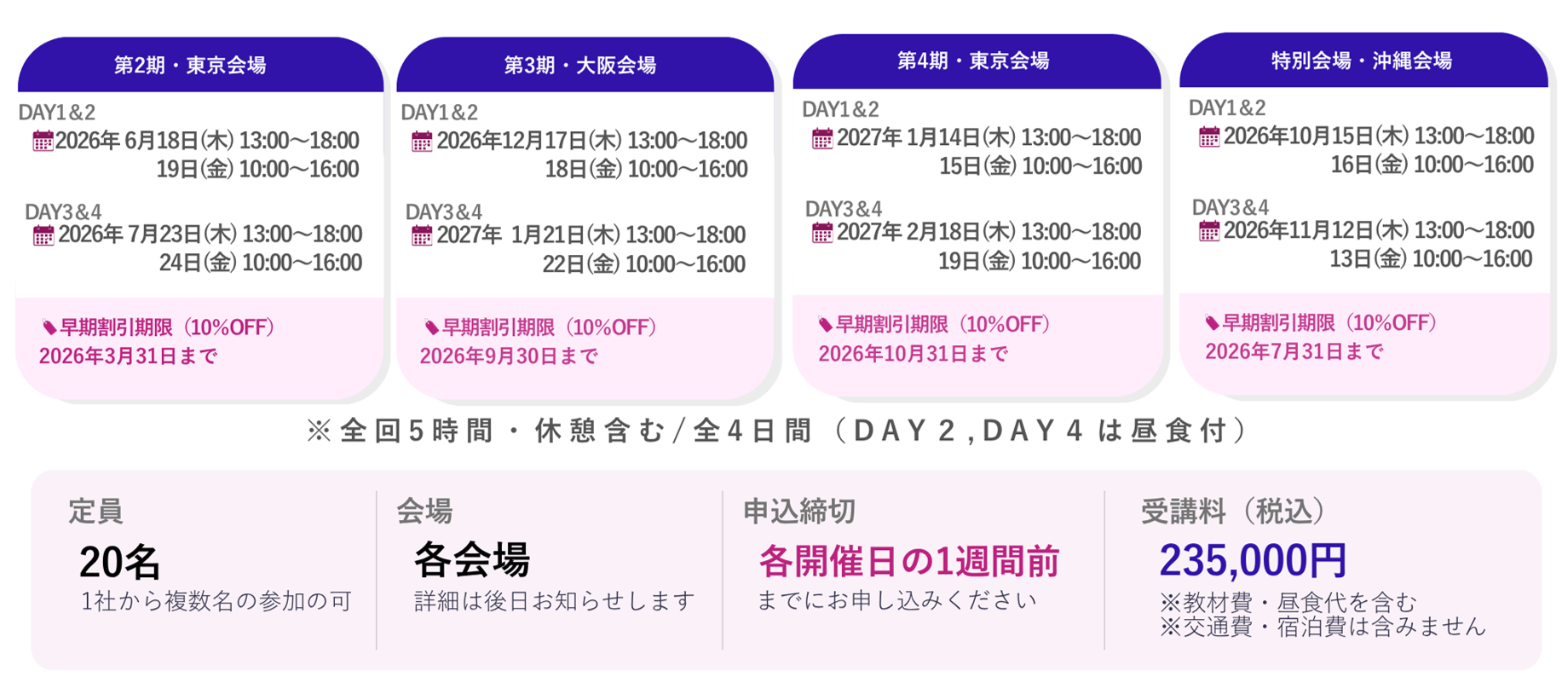 DAY3 2026年7月23日(木) :13:00-18:00 / DAY4 2026年7月24日(金) :10:00-16:00