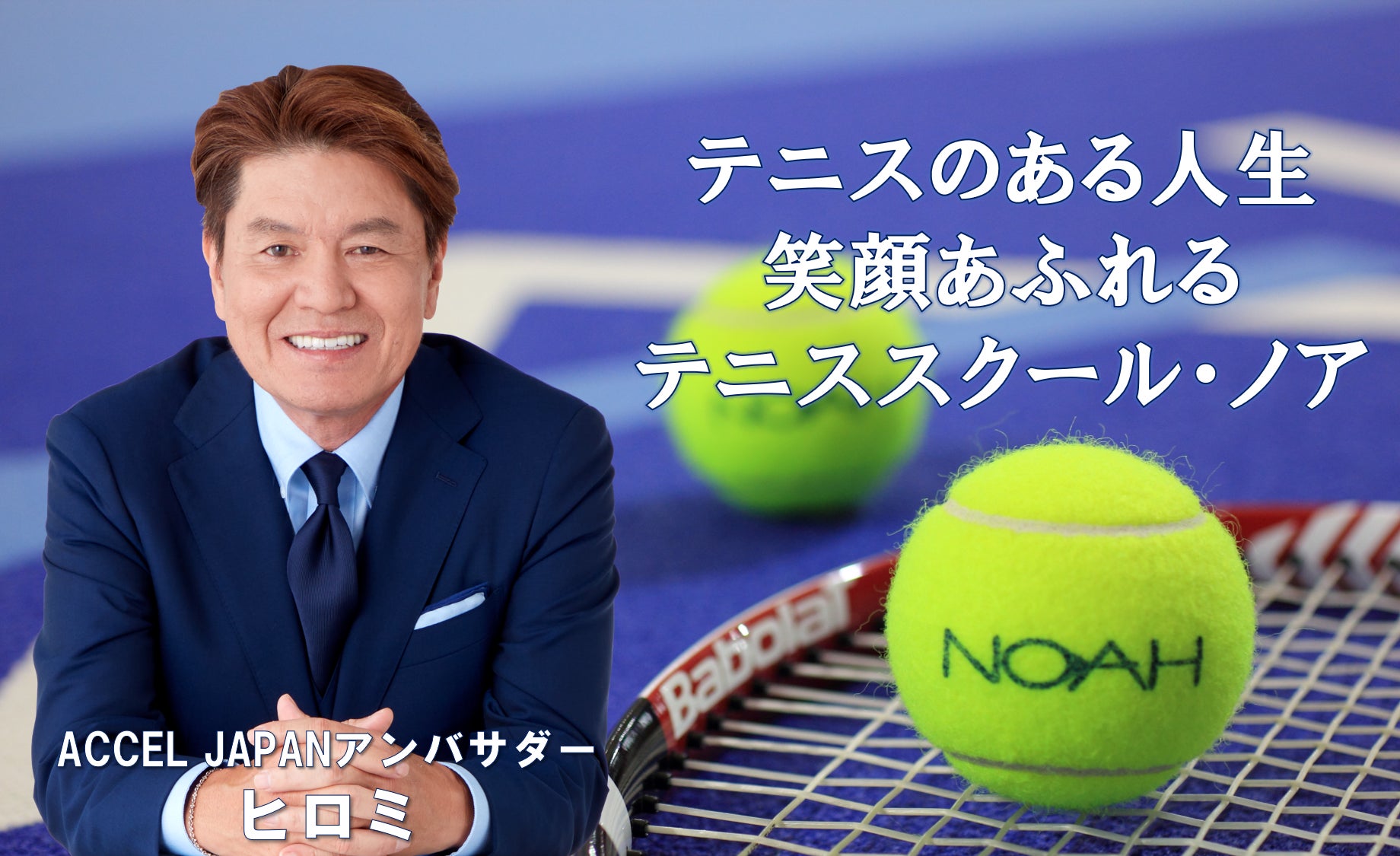 【ノアインドアステージ株式会社】 ヒロミさんがアンバサダーを務める『ACCEL JAPAN』に参画 テニススクール・ノアのプロモーションを開始