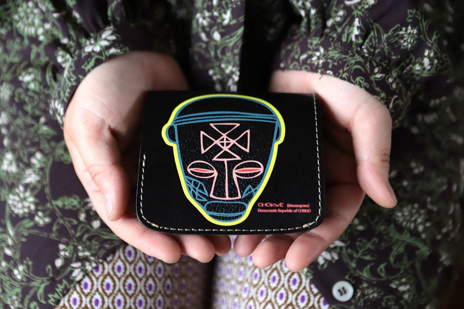 アフリカ好きにはたまらない!ピカソや岡本太郎も愛した「アフリカの仮面」がお財布に。売り上げの10%はノーベル平和賞受賞のムクウェゲ医師と、パンジ病院の活動のサポートに使われます。