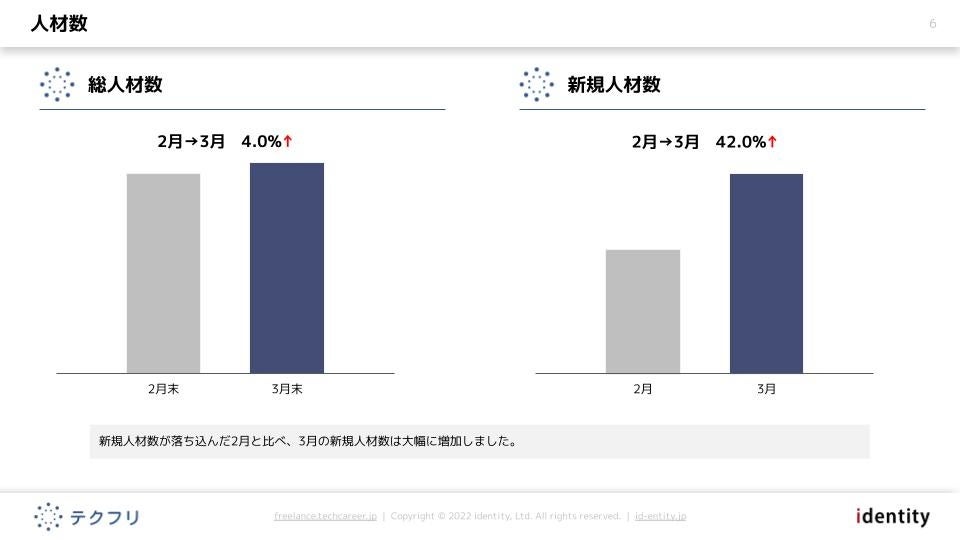 - 新規人材数が前月比42.0%と大幅に増加しました。