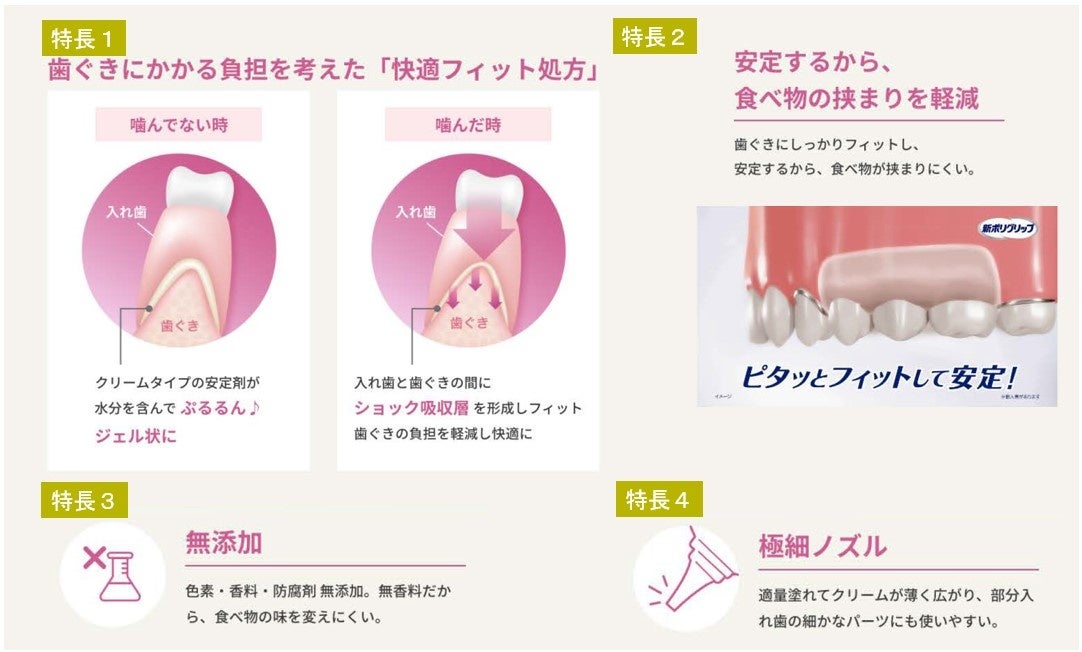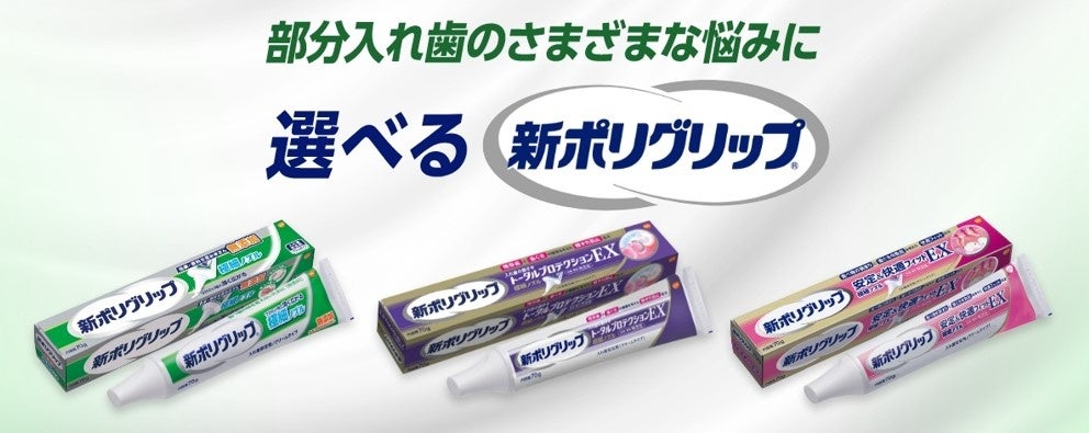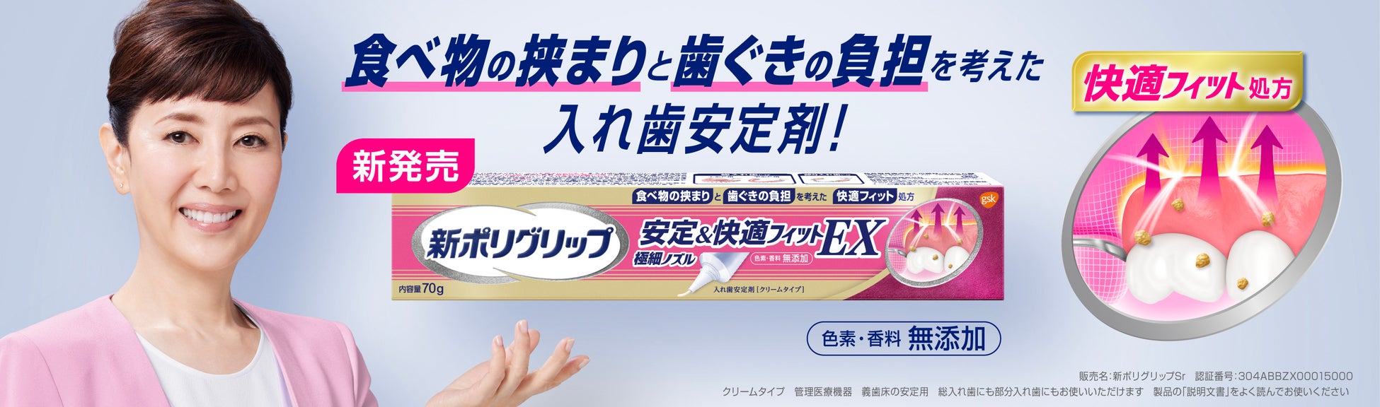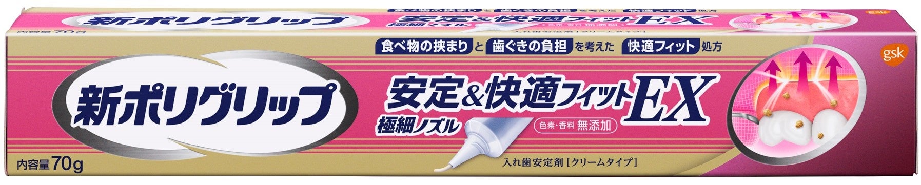 食べ物の挟まりと歯ぐきの負担を考えた入れ歯安定剤が新登場!「新ポリグリップ 安定&快適フィットEX」本日2023年9月11日(月)新発売