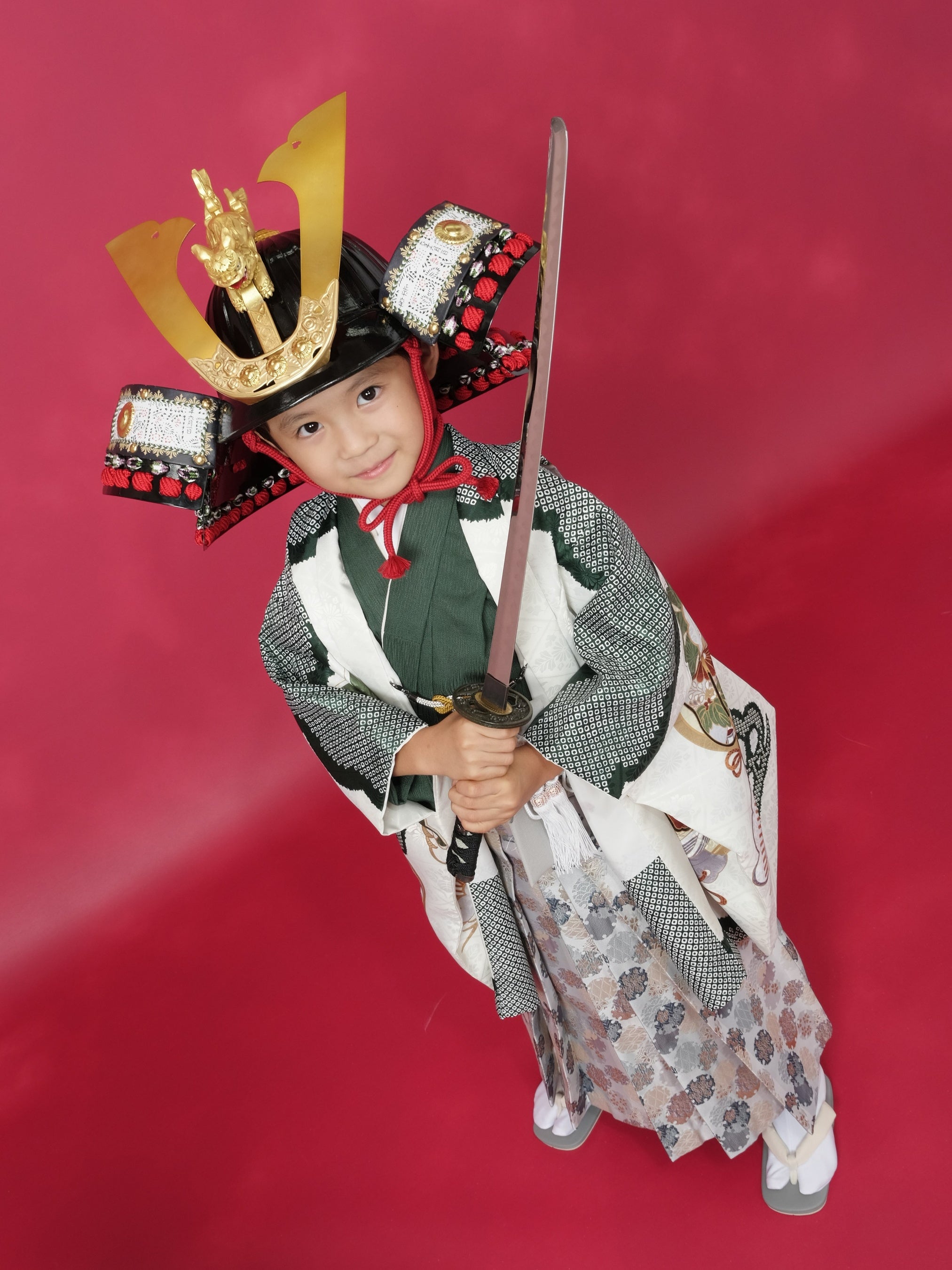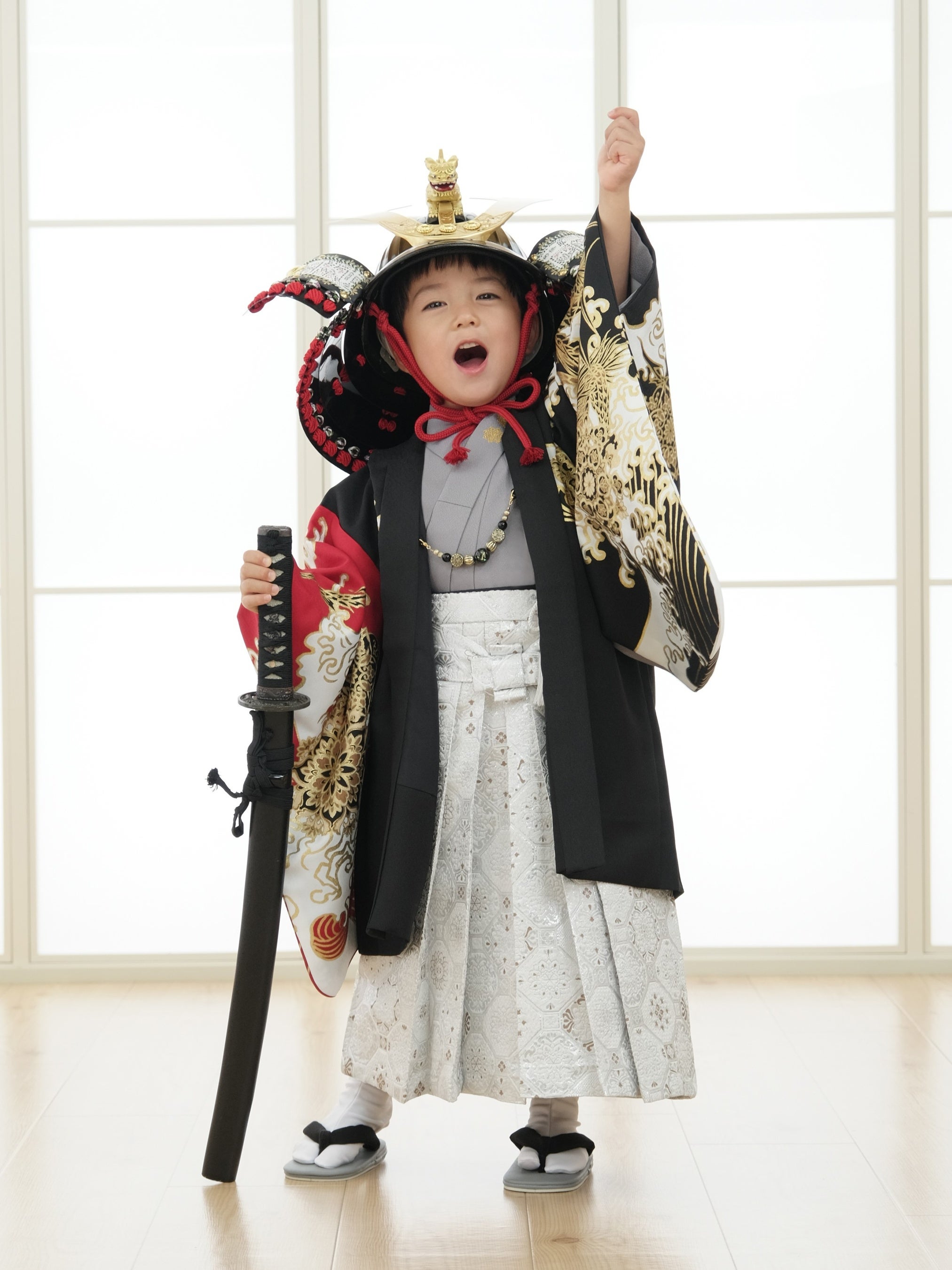 兜は話題の「丸武産業」が制作。特許取得の子ども向け鎧兜【かる冑】の兜をベースにさらなるオリジナル仕様で進化した兜です。武将気分を盛り上げる羽織や、刀などの小物もご用意しています。刀を勇ましく構えて、戦国武将気分を満喫しながら、臨場感あふれる撮影をお楽しみいただけます。和装でも洋装でも撮影できる「かっこいい」「かわいい」の二刀流の撮影ができます。この秋、スタジオアリスでホームラン級の笑顔でハレの日を盛りあげませんか。