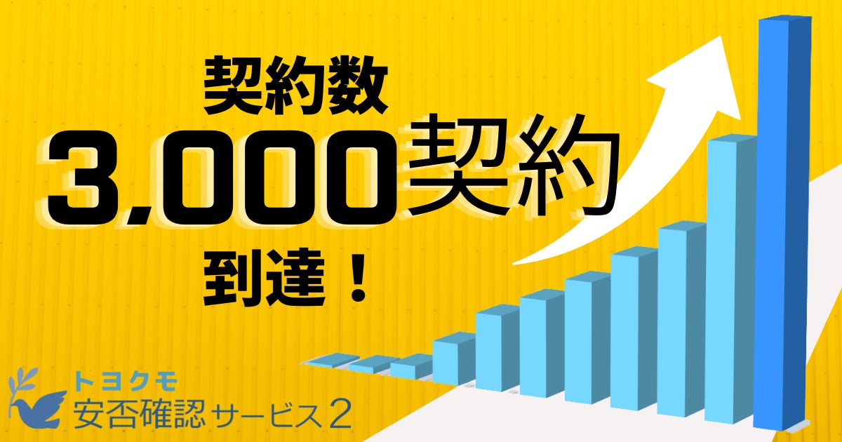 トヨクモ株式会社(本社:東京都品川区、代表取締役社長:山本 裕次、以下トヨクモ)が提供する災害時の安否確認システム「安否確認サービス2」は、2022年9月1日に契約数が3,000に到達したことをお知らせします。