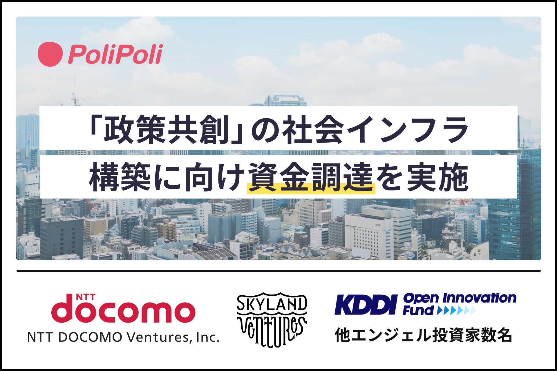 PoliPoli、政策共創の社会インフラ構築へ向け資金調達を実施。NTTやKDDI Open Innovation Fund 3号、Skyland Venturesらを出資者に迎え、事業拡大を目指す。
