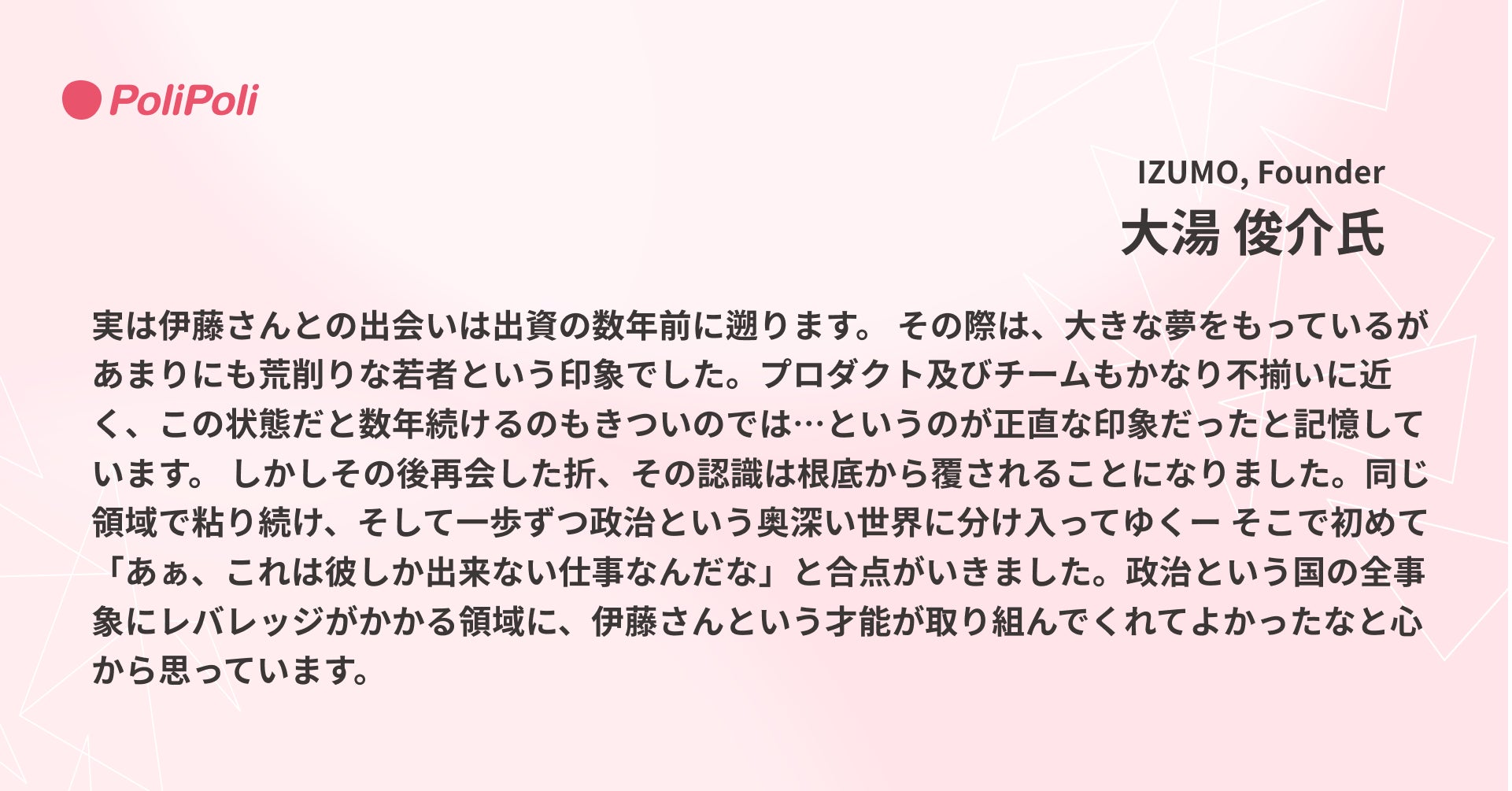 ■ PoliPoli CEO 伊藤和真 より