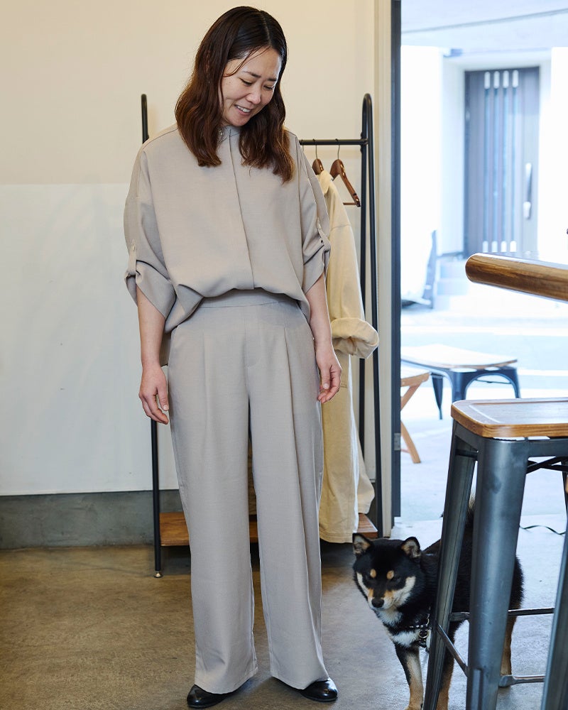 そこから、よりキレイめなイメージでも着られるようにセットアップのアイテムにブラッシュアップしました。