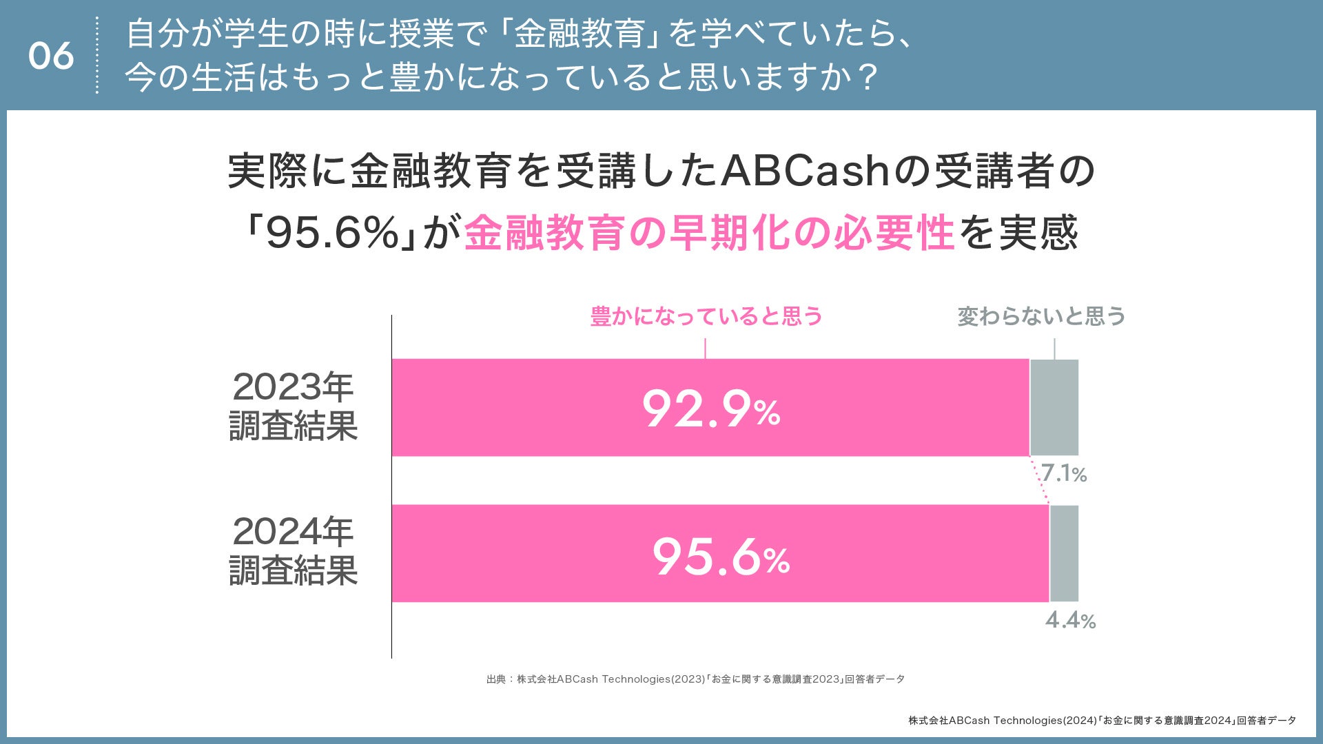 6.実際に金融教育を受けた経験者の95.6%が「金融教育の早期化の必要性」を実感。