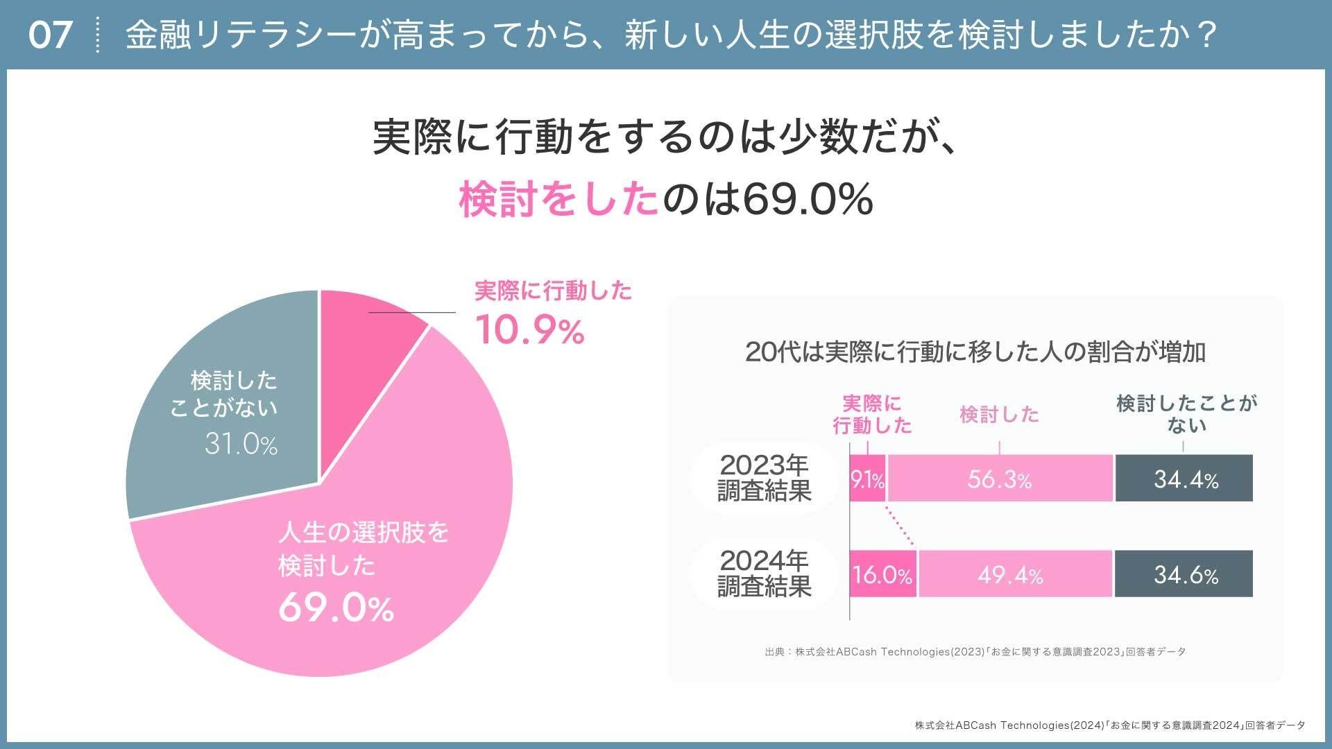 金融リテラシーが高まってから、新しい人生の選択肢を検討しましたか?