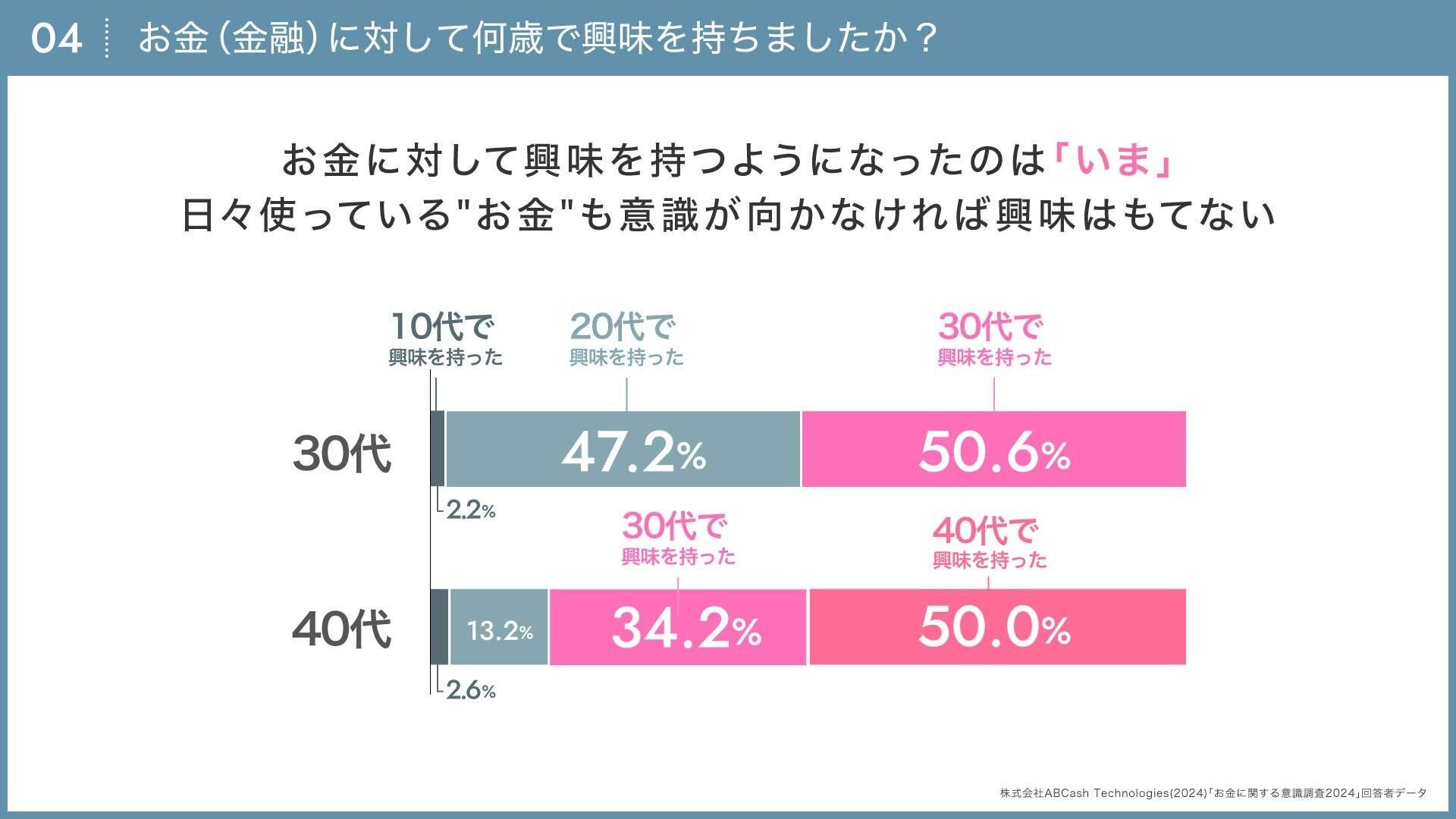 「お金(金融)」に対する興味は、それぞれの年齢の方がそれぞれの年齢において持ったと回答しました。