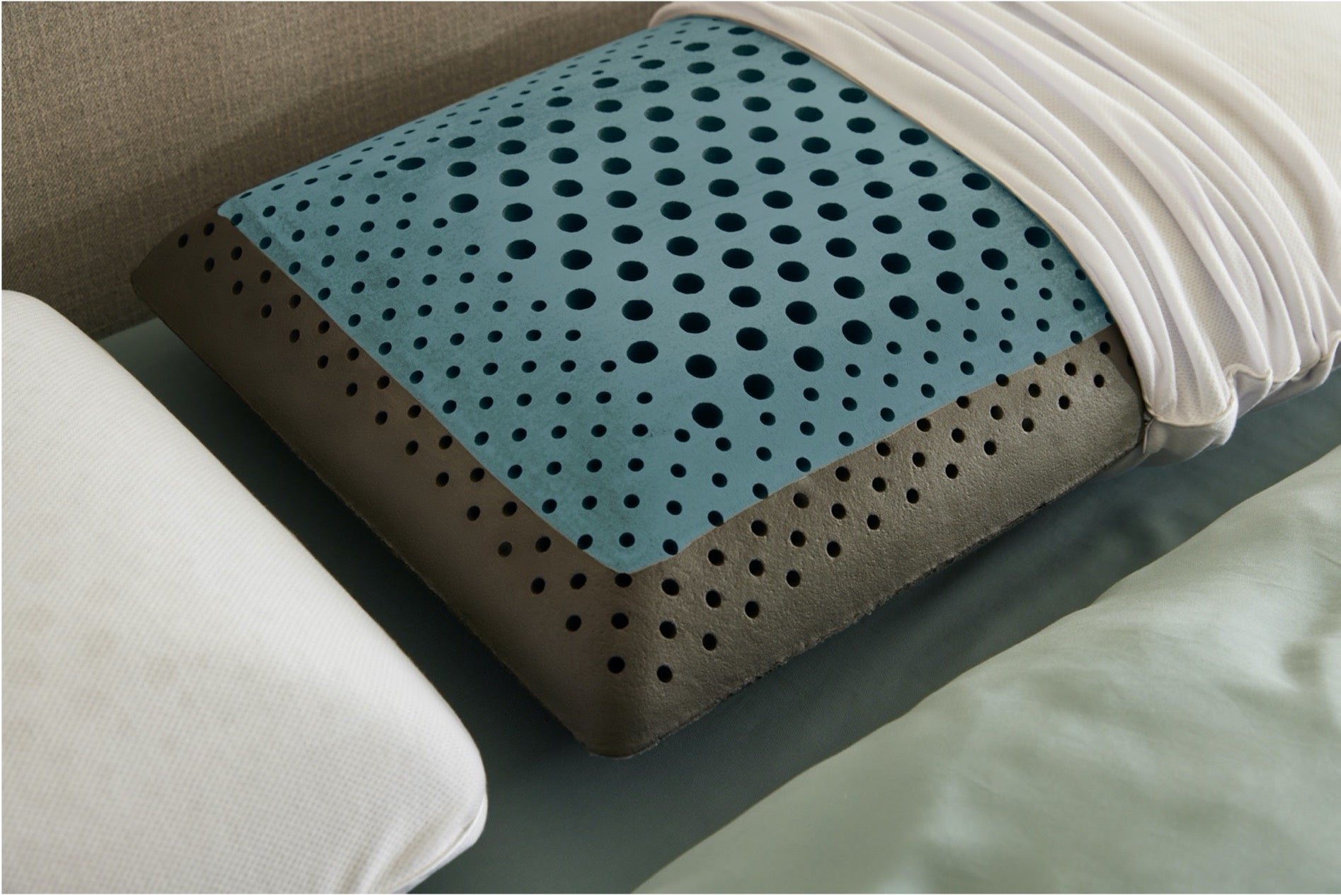 枕には、CertiPUR-US®認定のメモリーフォームを使用。枕全体に様々な大きさの通気孔が開いているので、枕にこもった熱気を外に放出。表面にソフトメッシュ生地を使用することで、高い通気性を保ちます。頭のかたちや重さに合わせて適度に沈むため、頭部もしっかりサポート。