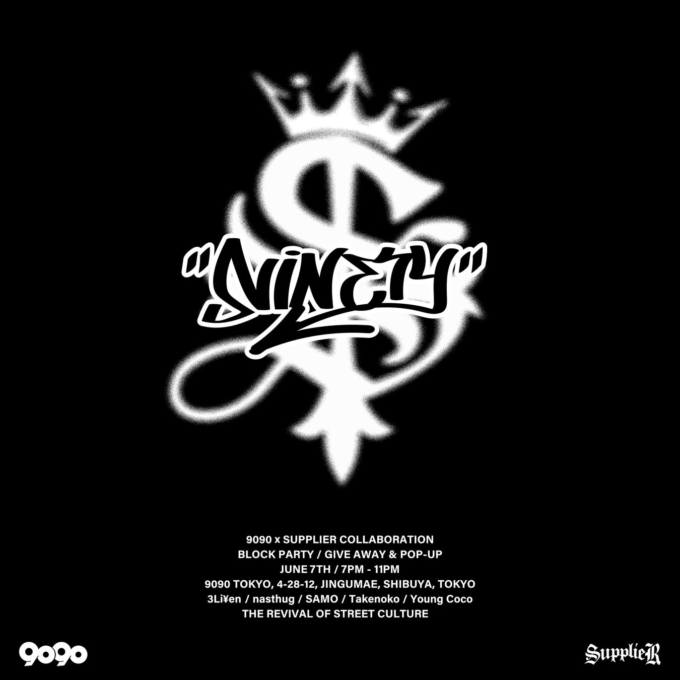 6月7日(金)19時より9090東京店舗にて、ラッパーのYoung Cocoや3li¥enを迎えて、コラボレーションを記念したローンチパーティーを行います。また、6月8日(土)より9090各店舗や各セレクトショップで販売いたします。