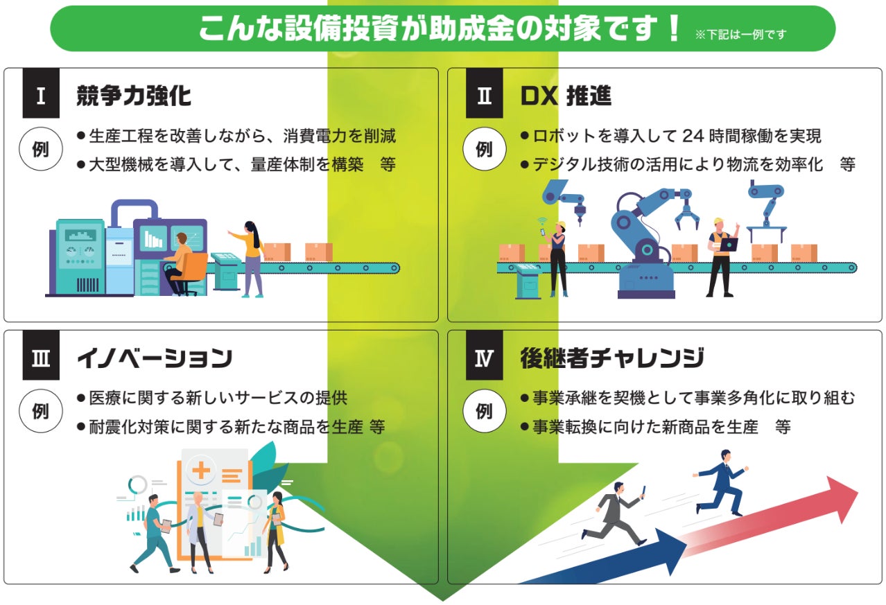 機械装置、器具備品、ソフトウェアの導入経費が助成対象