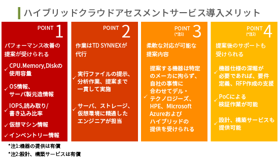 このようなハイブリッドクラウド市場が拡大する状況を踏まえ、外資系ITディストリビューターとしてグローバルレベルの技術支援体制を持つTD SYNNEXが、この度「ハイブリッドクラウドアセスメントサービス」の提供を行うこととなりました。