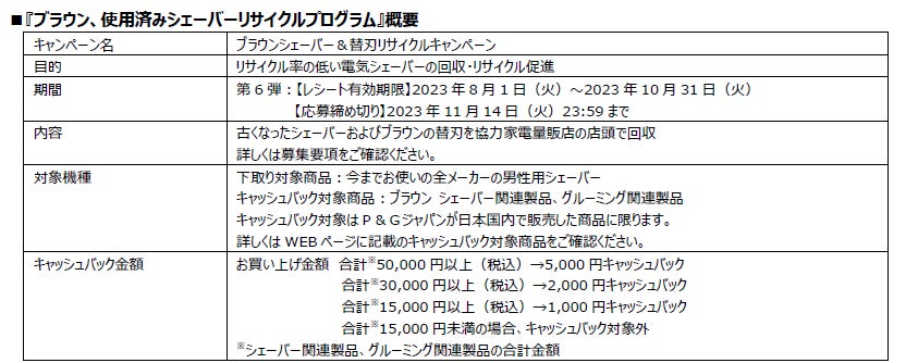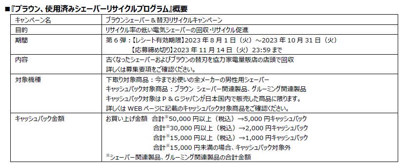 2023年8月1日より、第6弾 『ブラウン、使用済みシェーバーリサイクルプログラム』 キャンペーンを実施予定