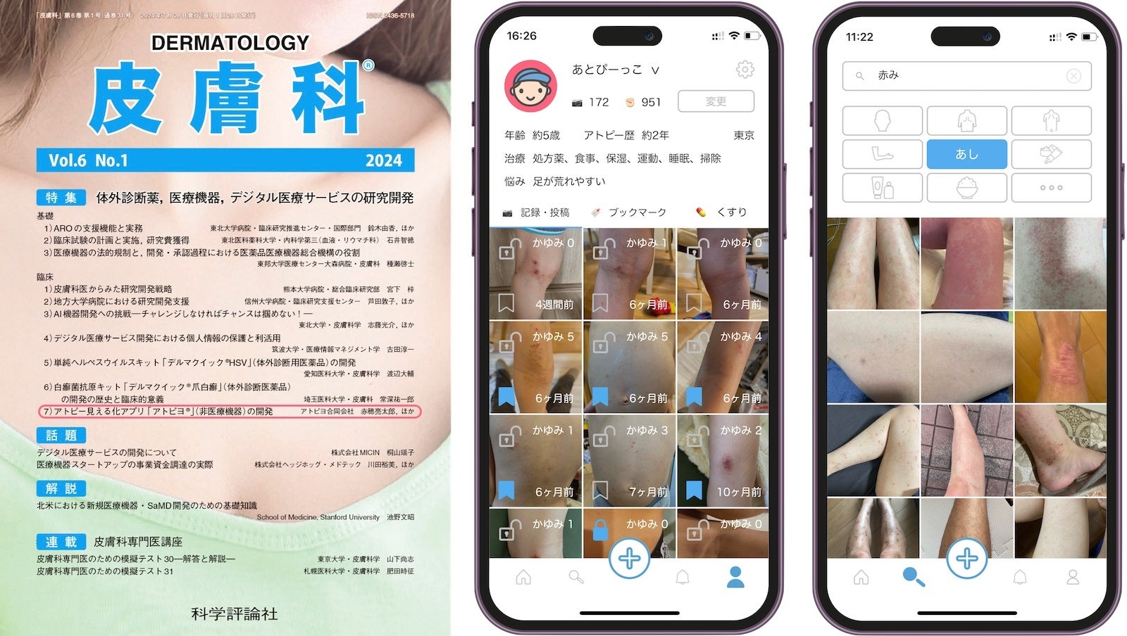 アトピヨ合同会社(所在地:千葉県市川市、代表:赤穂 亮太郎)は、権威ある皮膚科専門誌「皮膚科」7月号の特集「体外診断薬、医療機器、デジタル医療サービスの研究開発」において、代表の赤穂 亮太郎がアトピー見える化アプリ「アトピヨ」の開発について6ページにわたって執筆したことをお知らせします。この特集は、アトピー性皮膚炎の管理と研究において、アトピヨが重要なデジタルツールとして認識されていることを示しています。