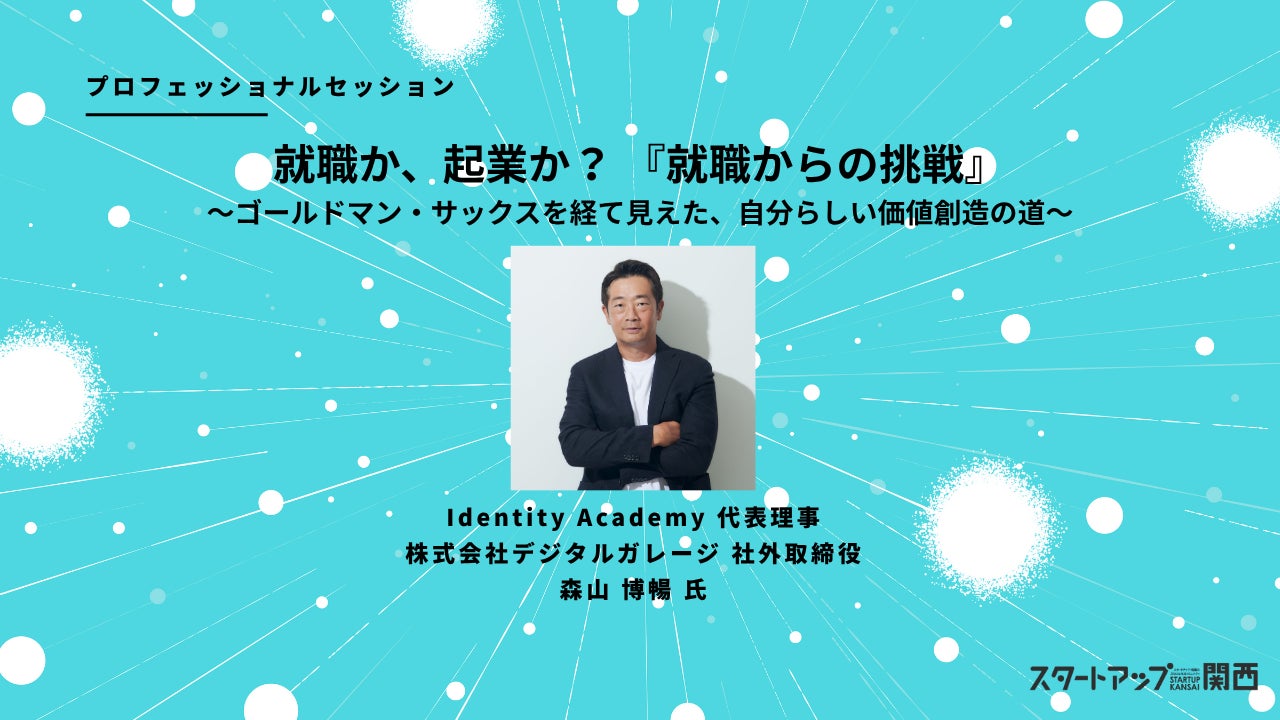 Identity Academy 代表理事、株式会社デジタルガレージ 社外取締役を務める森山氏が、ゴールドマン・サックスへの就職という選択を経て見えてきた起業への道や、「自分らしい道」を見据えて学生が今すべきことについてお話しします。