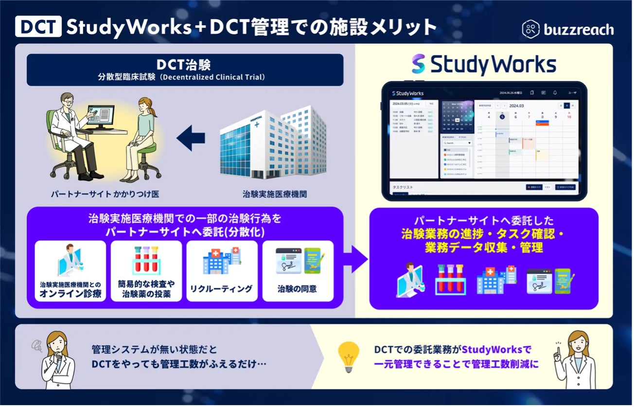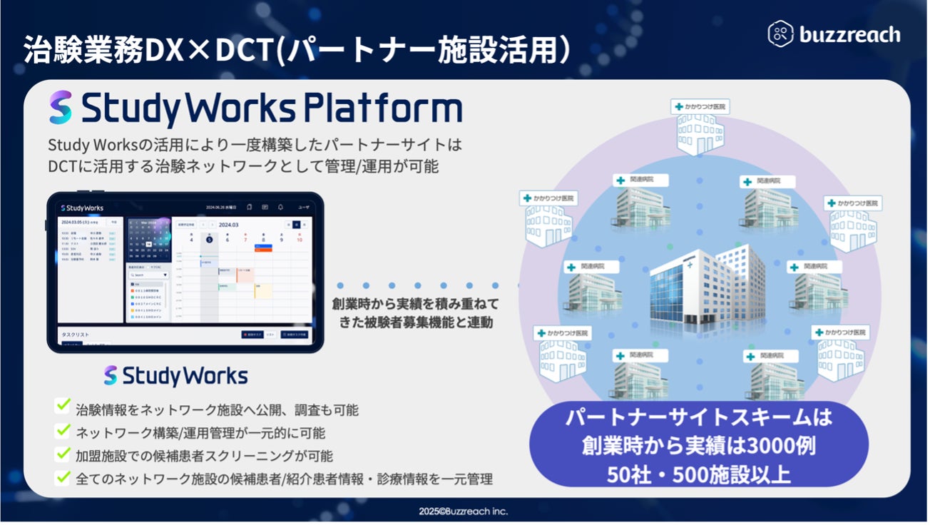 Buzzreachは、今後も「StudyWorks®︎」およびパートナーサイト連携モデルを通じて、治験の迅速化と業務の最適化を支援してまいります。