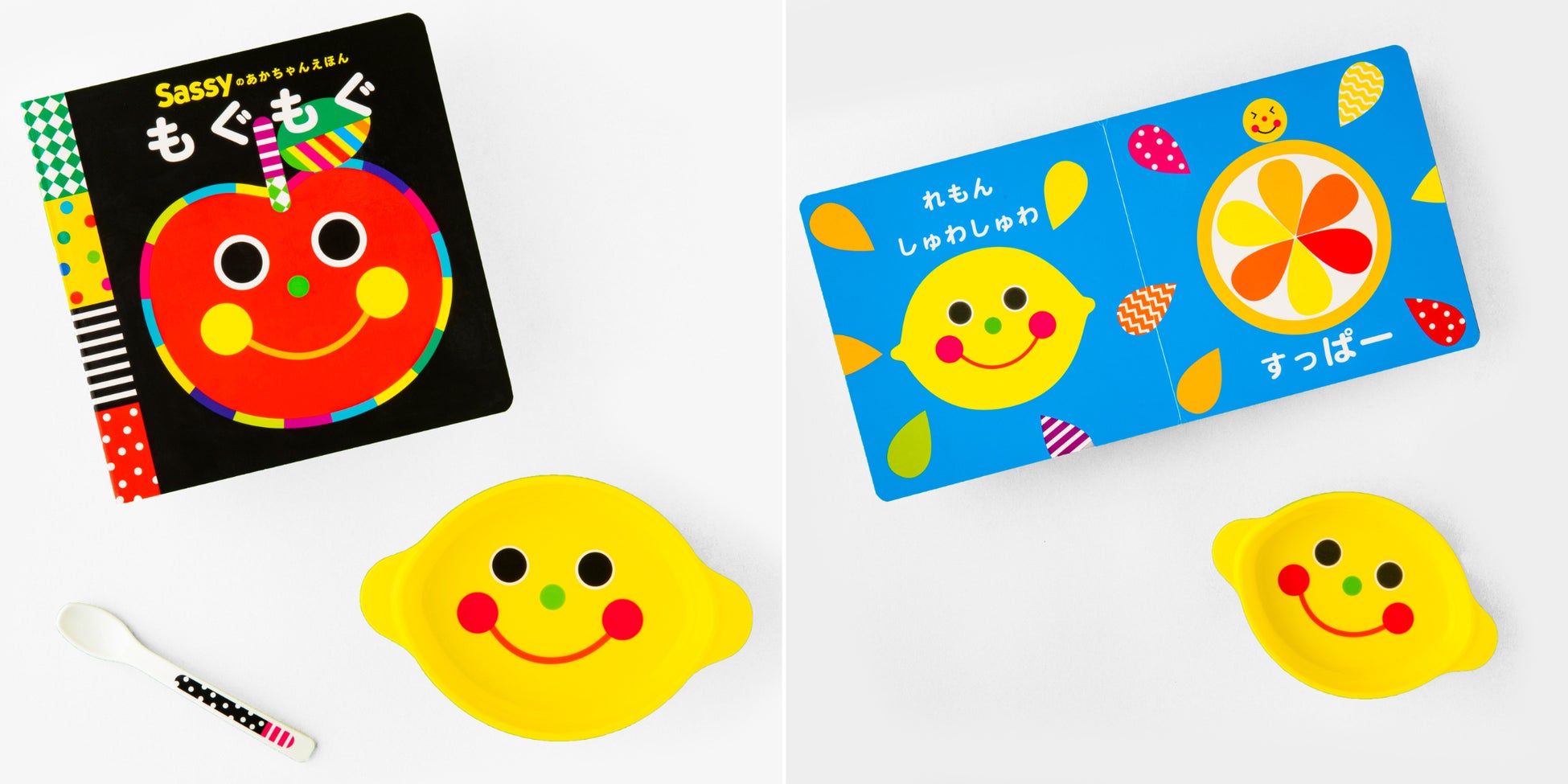 シリーズ累計120万部を突破した「Sassyのえほん」より、食べものをモチーフとしたキャラクターが登場する『Sassyのあかちゃんえほん もぐもぐ』と、限定デザインの「ベビー小皿」「フィーディングスプーン」の3点を詰めこんだ、「食べたい」気持ちを育むセットです。Sassyのアイテムが赤ちゃんの楽しいお食事タイムを応援します。