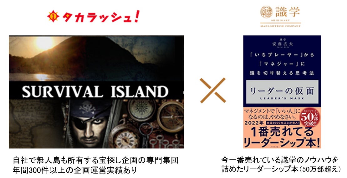 体験型コンテンツ「リアル宝探し」の企画・制作・運営を手がける株式会社タカラッシュ(本社:東京都品川区、代表取締役:齊藤 多可志)と組織運営の課題を解決する株式会社識学(東京都品川区、代表取締役社長:安藤 広大)は、企業の新しいマネジメント技術として室内型サバイバル研修プログラム「サバイバル・アイランド」をこの度、共同開発いたしました。