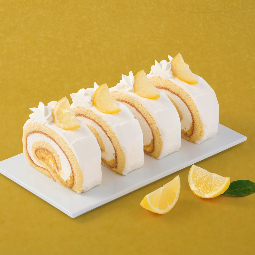 爽やかなレモンクリームと、まるでレモンをかじっているようなジューシーでストレートな酸味のレモンジャムクリームを、もっちりしっとりとしたロール生地で巻きました。