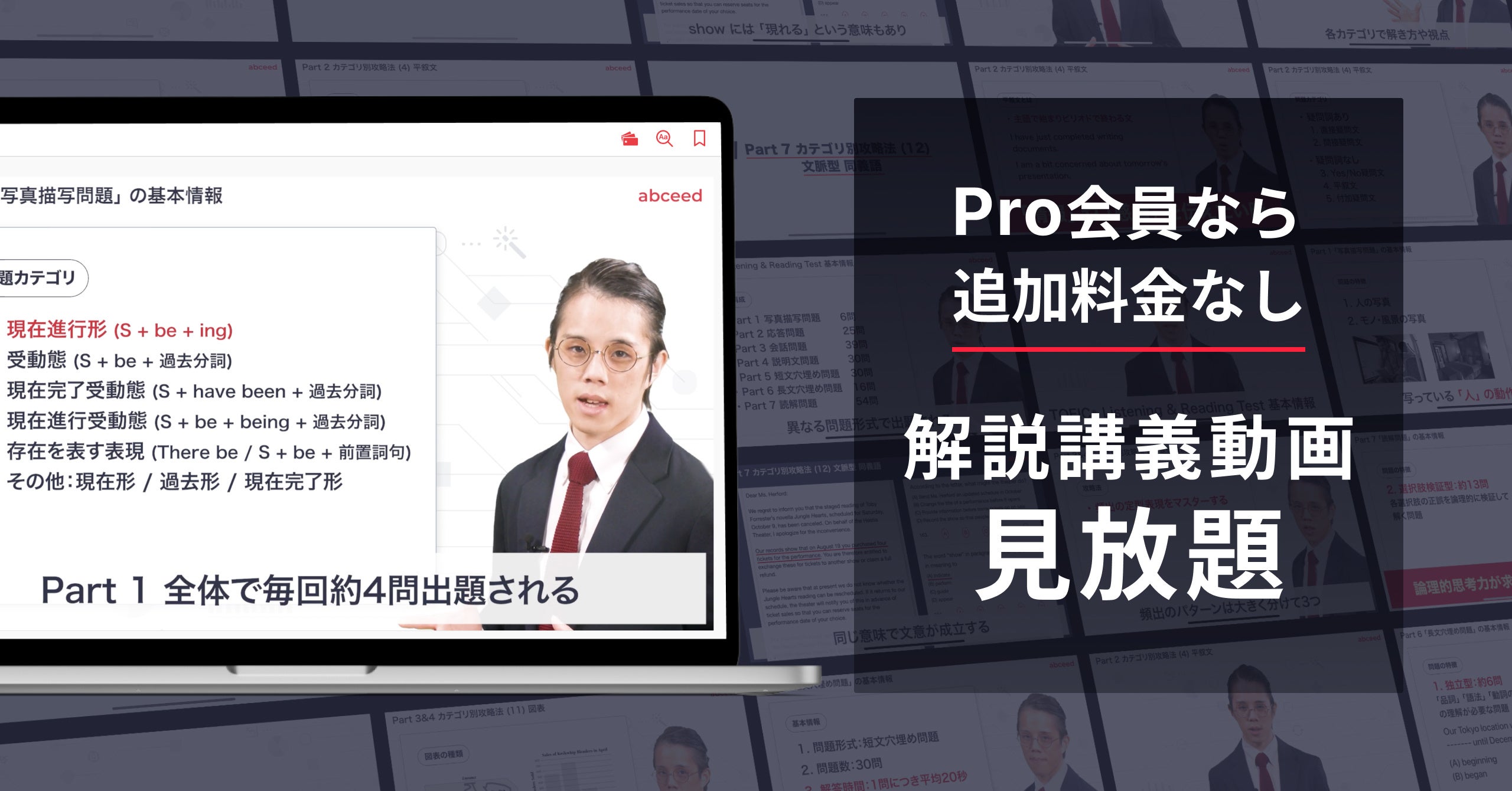 現在、abceed に公開中の解説講義動画は計116本となり、abceed pro会員の方は追加料金なしで各講義動画を無制限にご視聴いただけます。