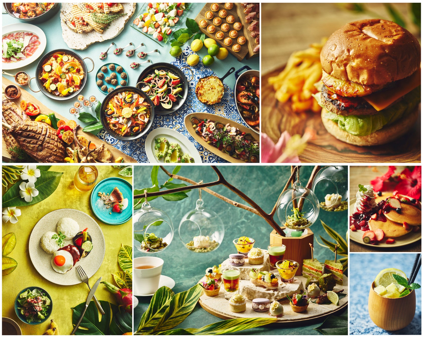 オールデイダイニング「アクアベル」では、地中海をテーマに、太陽と海の恵みをふんだんに取り入れたリゾートディナーブッフェを開催。「オーシャンカフェ」では、南国の香りあふれるハワイアンメニューに加え、緑豊かなリゾートガーデンと青い海をイメージしたアフタヌーンティーが登場します。また、日本料理「雲海」では伝統的な琉球食材と、旬を迎える浅利や初鰹など春の味覚を盛り込んだ「琉球御膳」をご提供いたします。