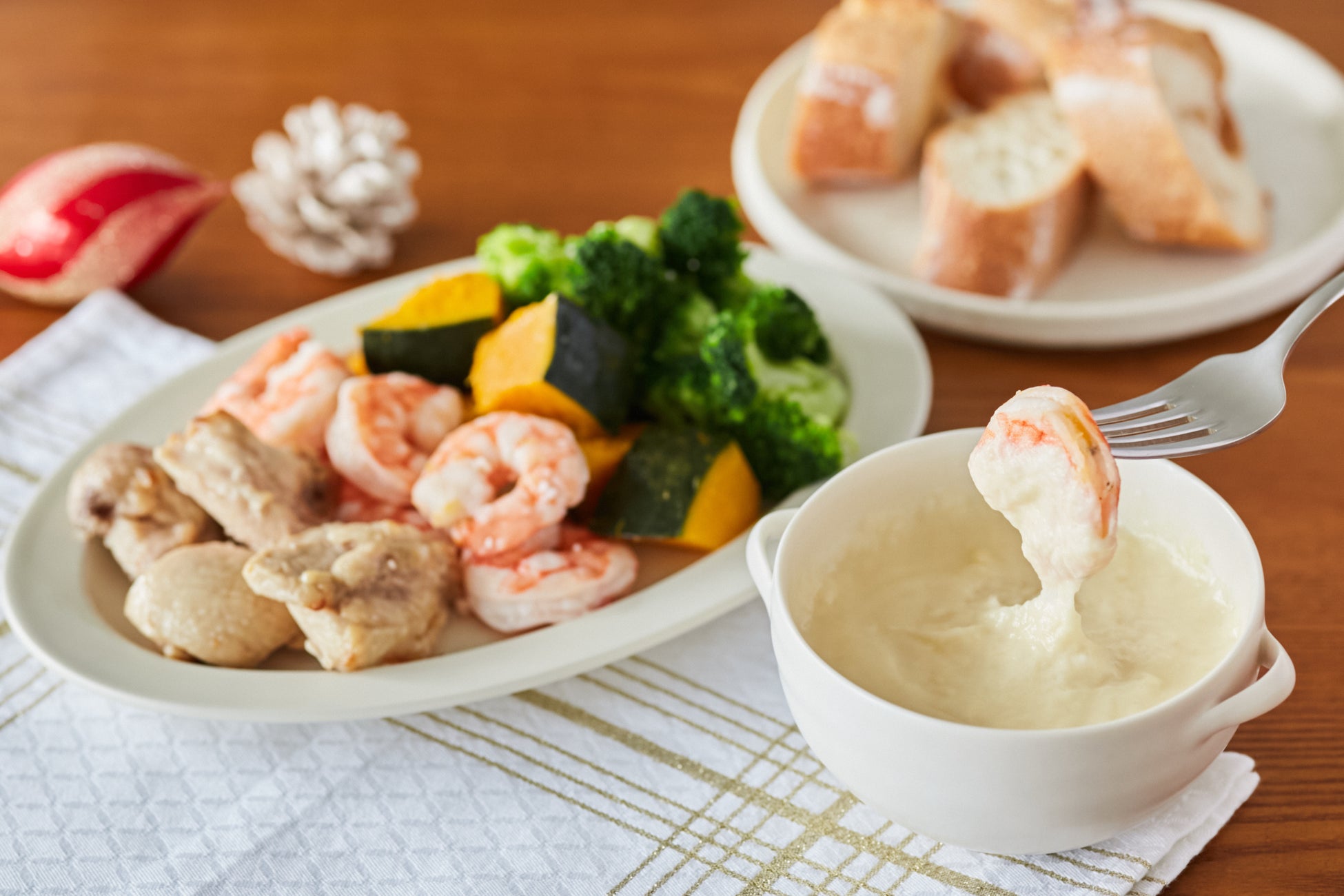 濃厚なチーズに、バゲットやプリプリのえび、野菜をディップして楽しむ冬にぴったりの一品です。※チーズフォンデュは5食プランのみのご提供となります。