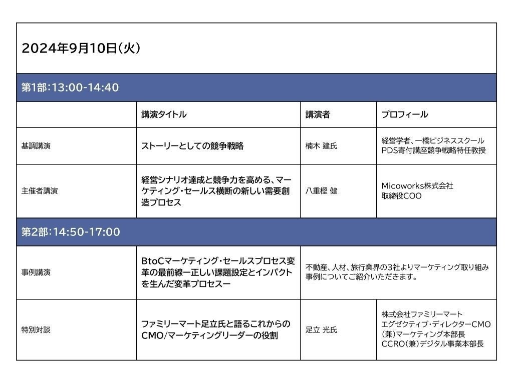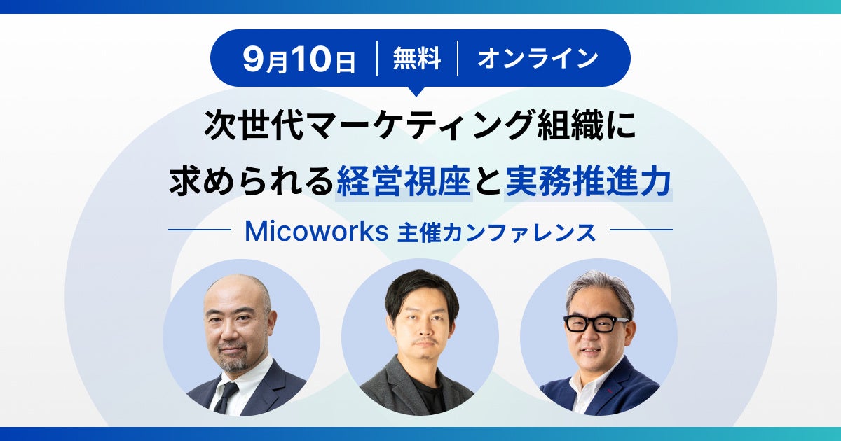 Micoworks株式会社(本社:大阪府大阪市、代表取締役社長:山田 修)は、オンラインカンファレンス「次世代マーケティング組織に求められる経営視座と実務推進力」を2024年9月10日(火)13時より開催します。