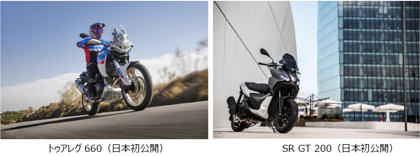 アプリリアは、ミドルスポーツに採用している2気筒660㏄エンジンを搭載した新しいアドベンチャーモデル『トゥアレグ660』と、アプリリア初のアーバンアドベンチャースクーター『SR GT 200』を初公開する他、125㏄から1100㏄までのスポーティーなモデルをラインナップいたします。
