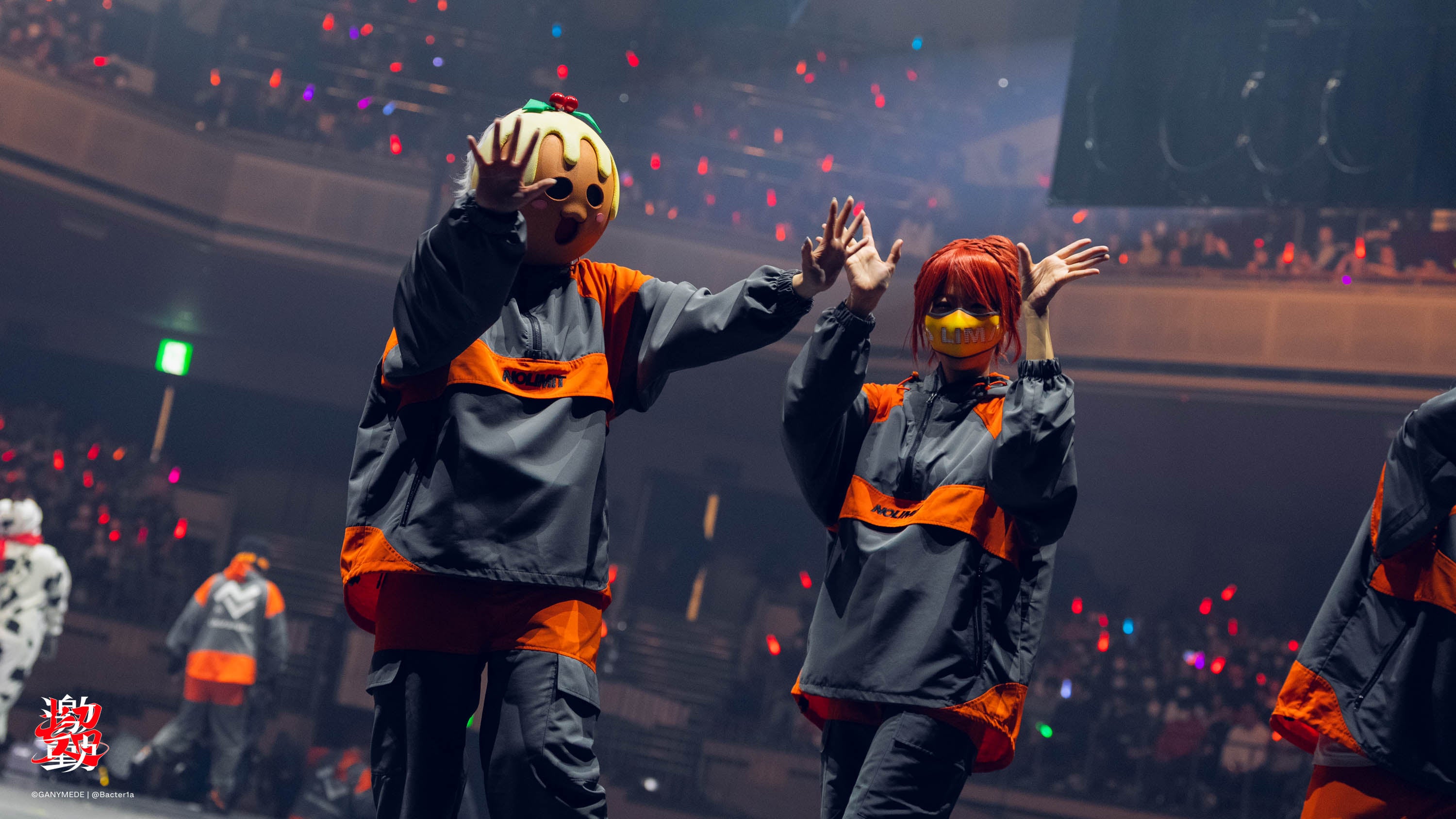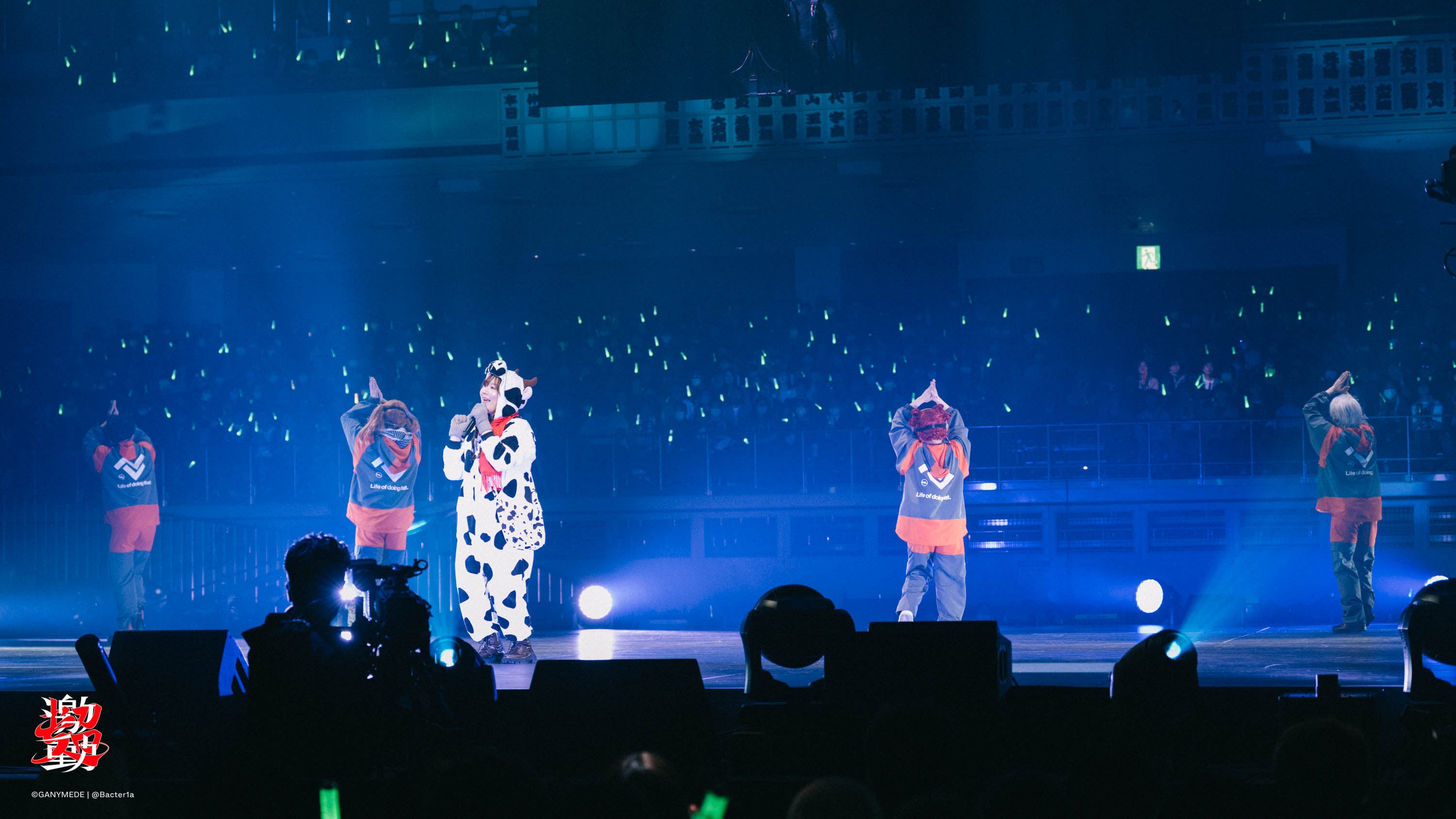 中盤、MC Sunriseの「ウタカタララバイ」、s-floの「miss you」で会場のボルテージは最高潮に。続くうしくんは「やっぱりハラミ」で独自の世界観を表現し、「惑星ループ」ではバックダンサー4名を引き連れて、さらに会場を盛り上げました。