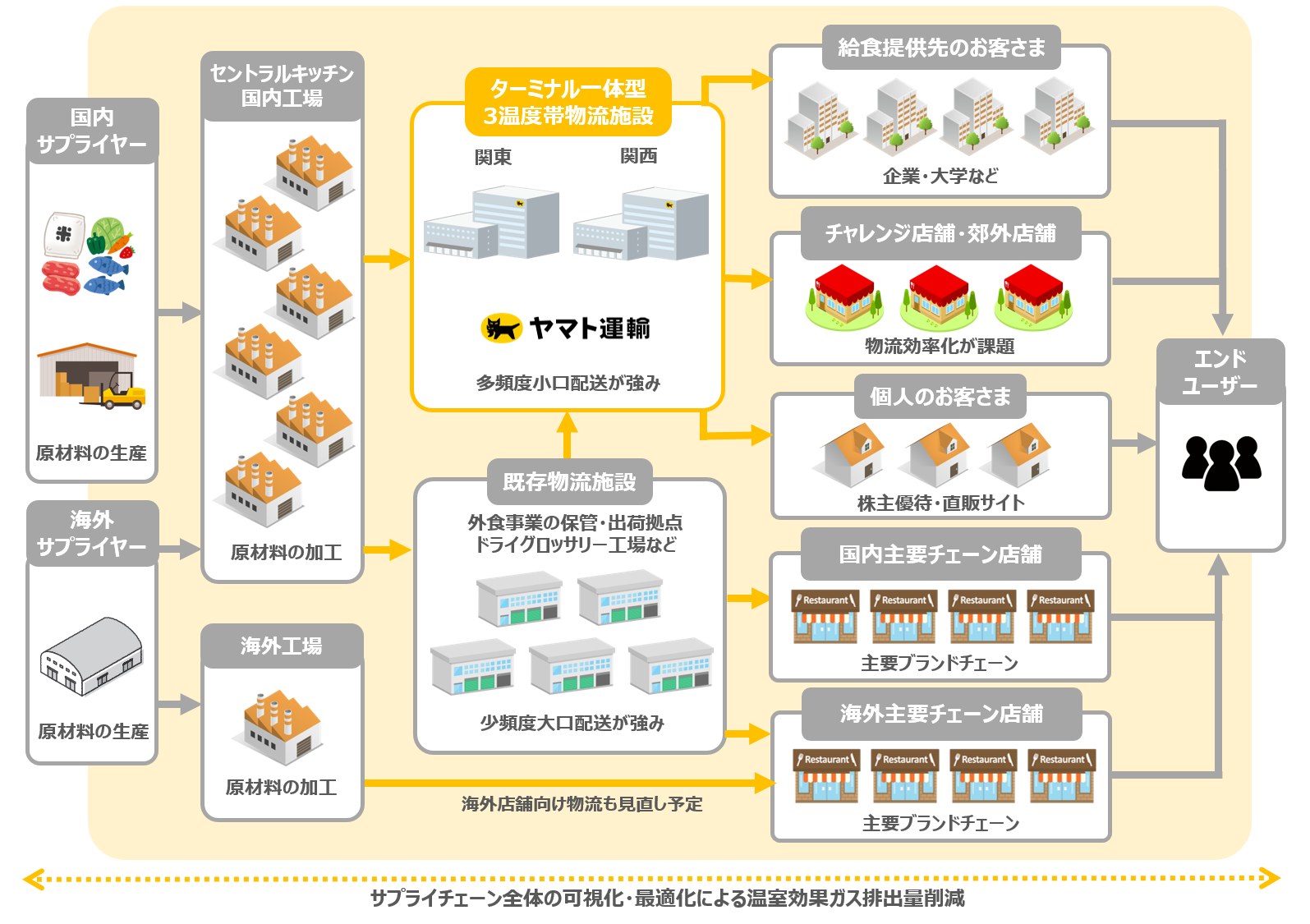 また、引き続きコロワイドグループのサプライチェーン全体の可視化・最適化を進めるとともに、ヤマト運輸の物流ネットワークを活用することで、持続可能なサプライチェーンの構築を目指します。