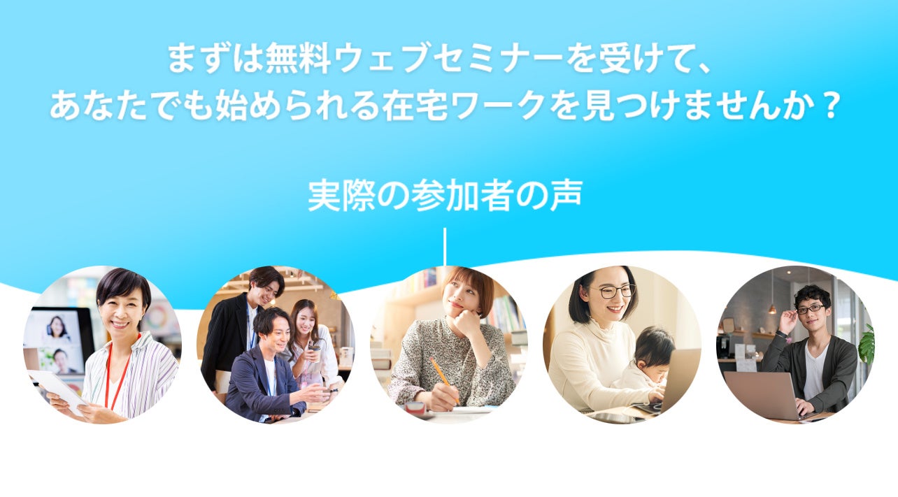 そこで、「ゼロからはじめる在宅ワークセミナー」を実施いたします。未経験者からでもすぐに『在宅ワーク』のお仕事獲得に繋がった実際の体験談や、実際の収入実例などリアルなお話が聞けて、疑問・お悩みを解決するセミナーです。