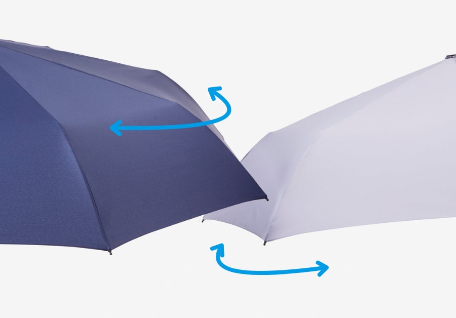 傘同士がぶつかった際の衝撃や風の衝撃を受け流し壊れにくい仕様に。傘をさすことに慣れていない子供は電柱や壁、人とすれ違う時も傘をぶつけがち。そんな時も、ぶつかった瞬間傘が周り、衝撃を受け流すので手への負担も軽減されます