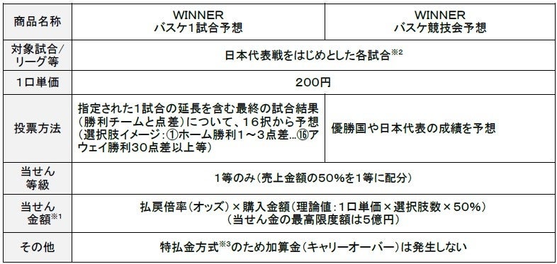 バスケットボールワールドカップを対象とした「WINNER」の販売予定