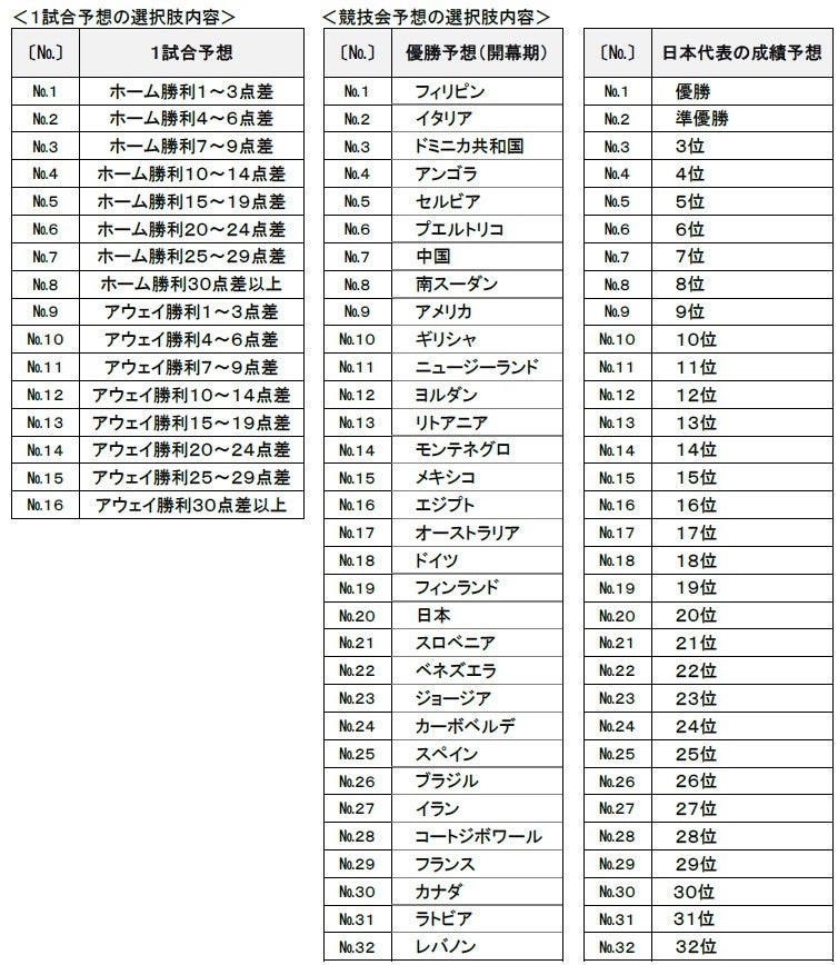 バスケットボールワールドカップを対象とした「WINNER」の投票の種類
