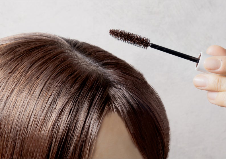 ブラシの毛が柔らかく髪に分け入り、生え際やこめかみなど、細かい部分のポイントにも塗りやすい。