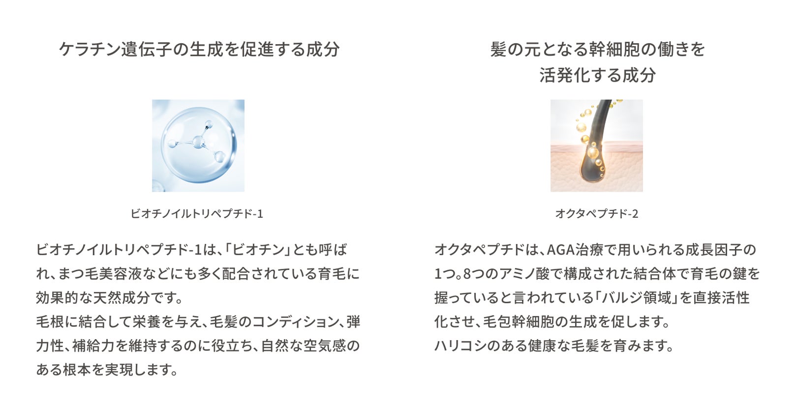 水、エタノール、PVP、グリセリン、BG、TEA、オクタペプチド-2、オトギリソウ花/葉/茎エキス、サガラメエキス、ビオチノイルトリペプチド-1、ユズ果実エキス、加水分解コラーゲン、加水分解シルク、加水分解ヒアルロン酸、パンテノール、