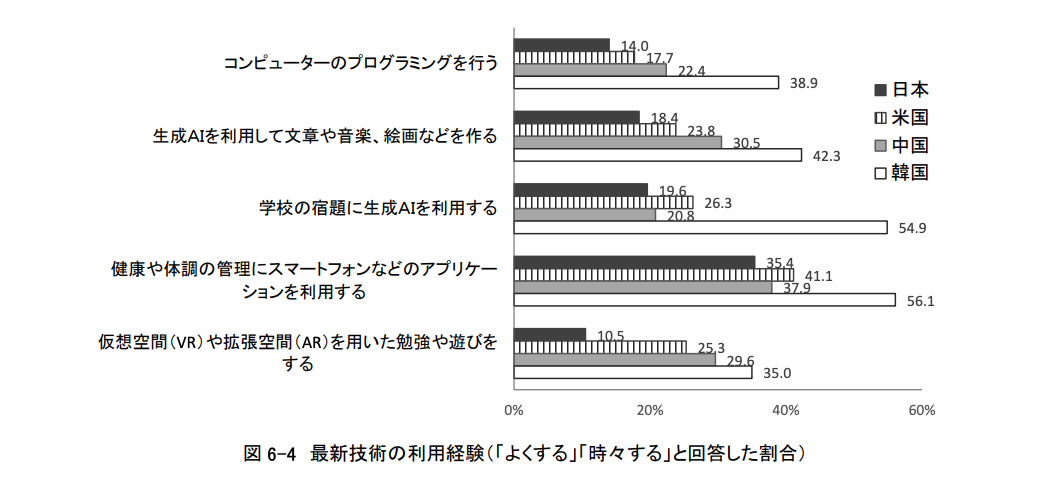 対照的に、韓国・米国・中国では、生成AIやVR/ARが教育・生活に広く浸透し、若者のデジタル実装力が競争力の源泉となりつつあります。