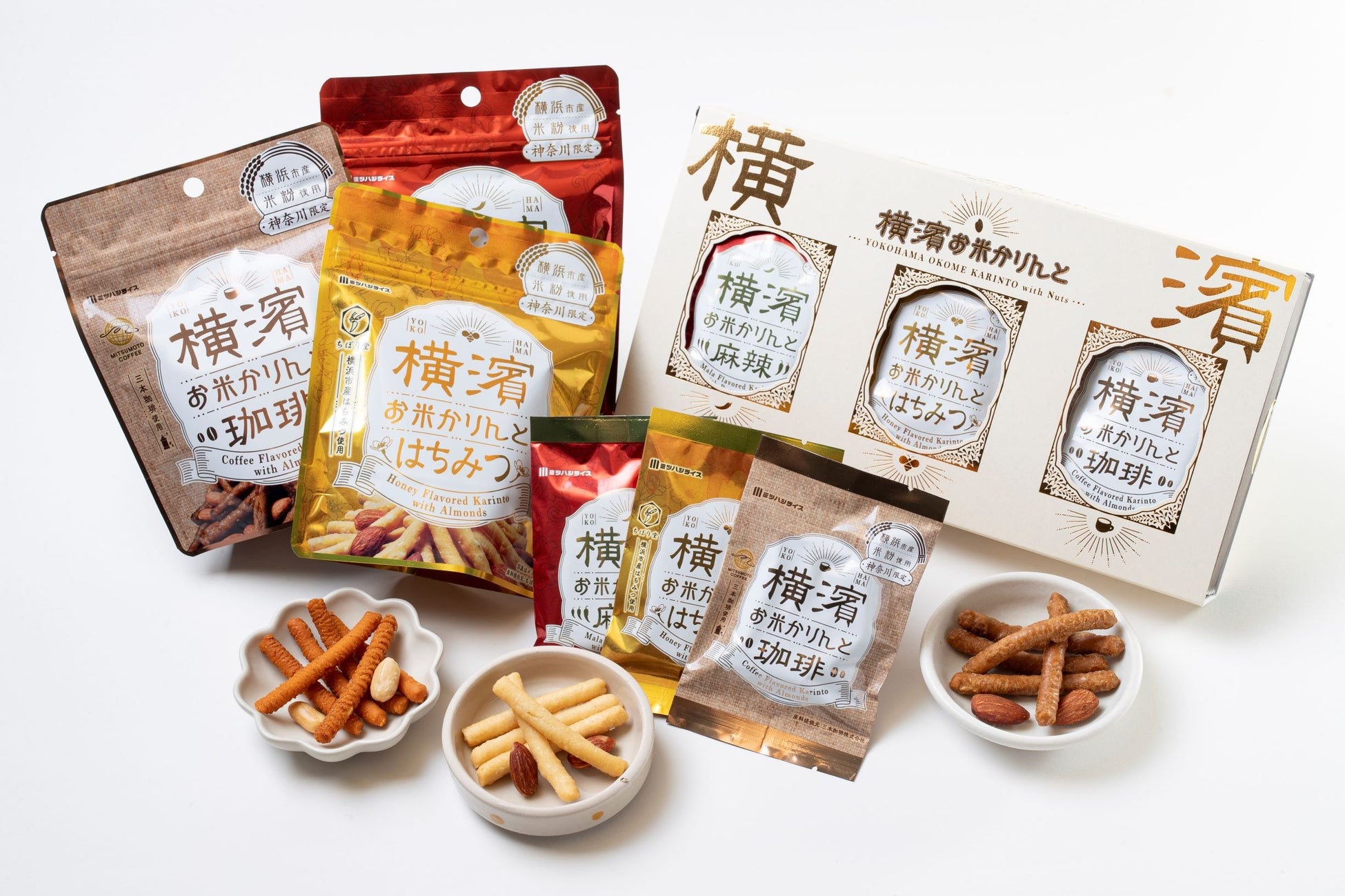 横浜市産の米粉を100%使用したお米のかりんとうです。フレーバーは横浜にゆかりのある、珈琲・麻辣・はちみつの3種類で、持ち歩きやすいスタンドパウチに加えて、箱に入った詰め合わせもございます。2021年11月の発売以来、”地産地消”の横浜みやげとしてご好評をいただいております。