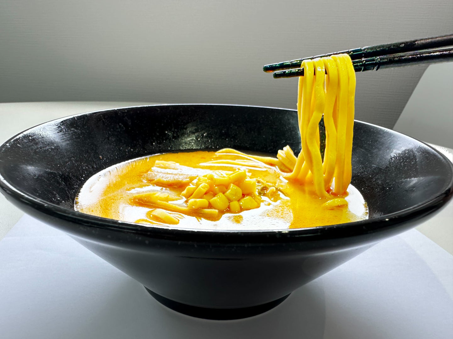 独自の製法で開発した、スープに浸っていても伸びにくい麺を採用。今までのらーめん缶はこんにゃく麺が主流でしたが、この度開発したらーめん缶は業界初の小麦麺を使用したものとなっており、いつでもどこでも、本格的なラーメンをお楽しみいただけます。