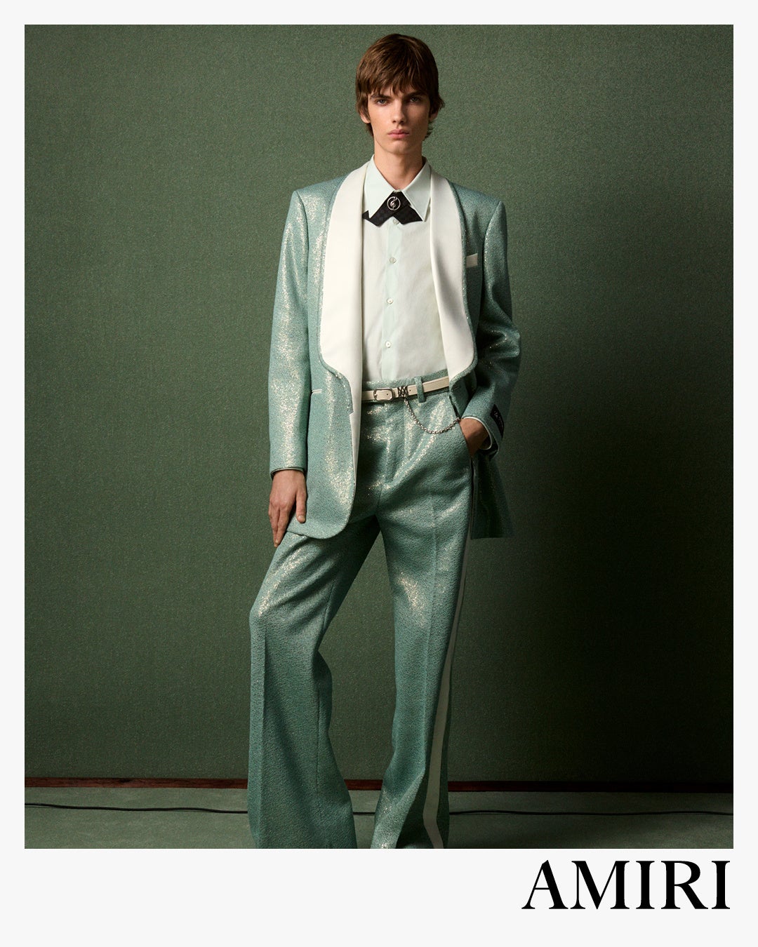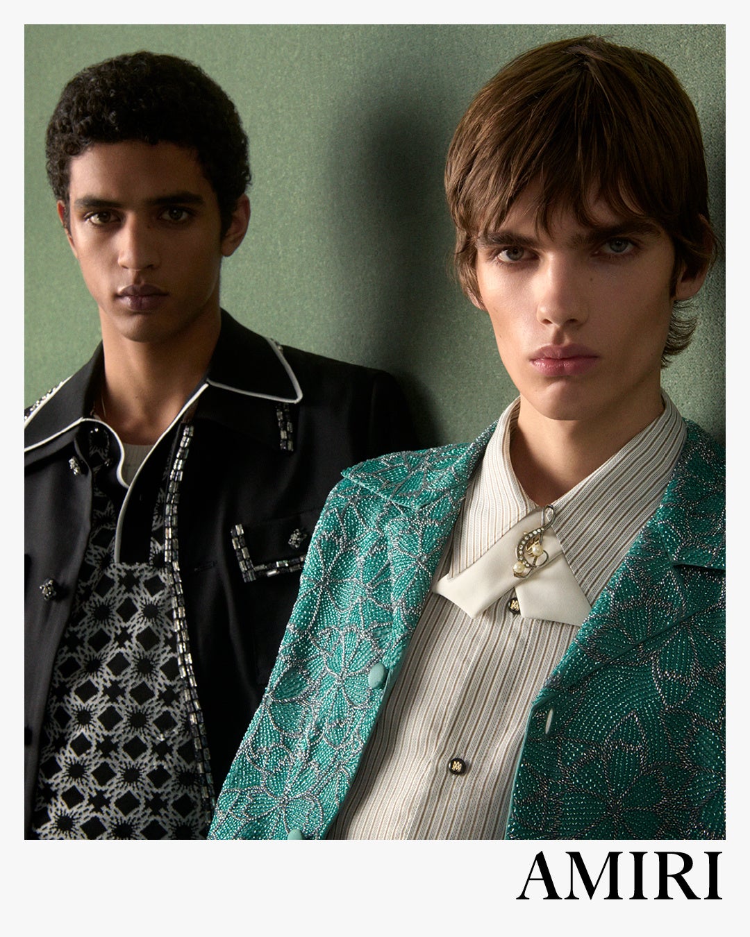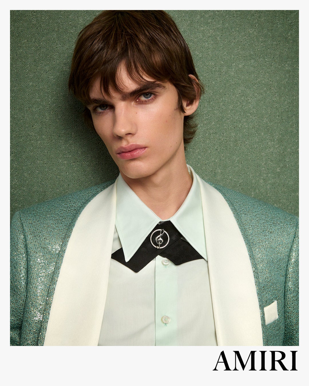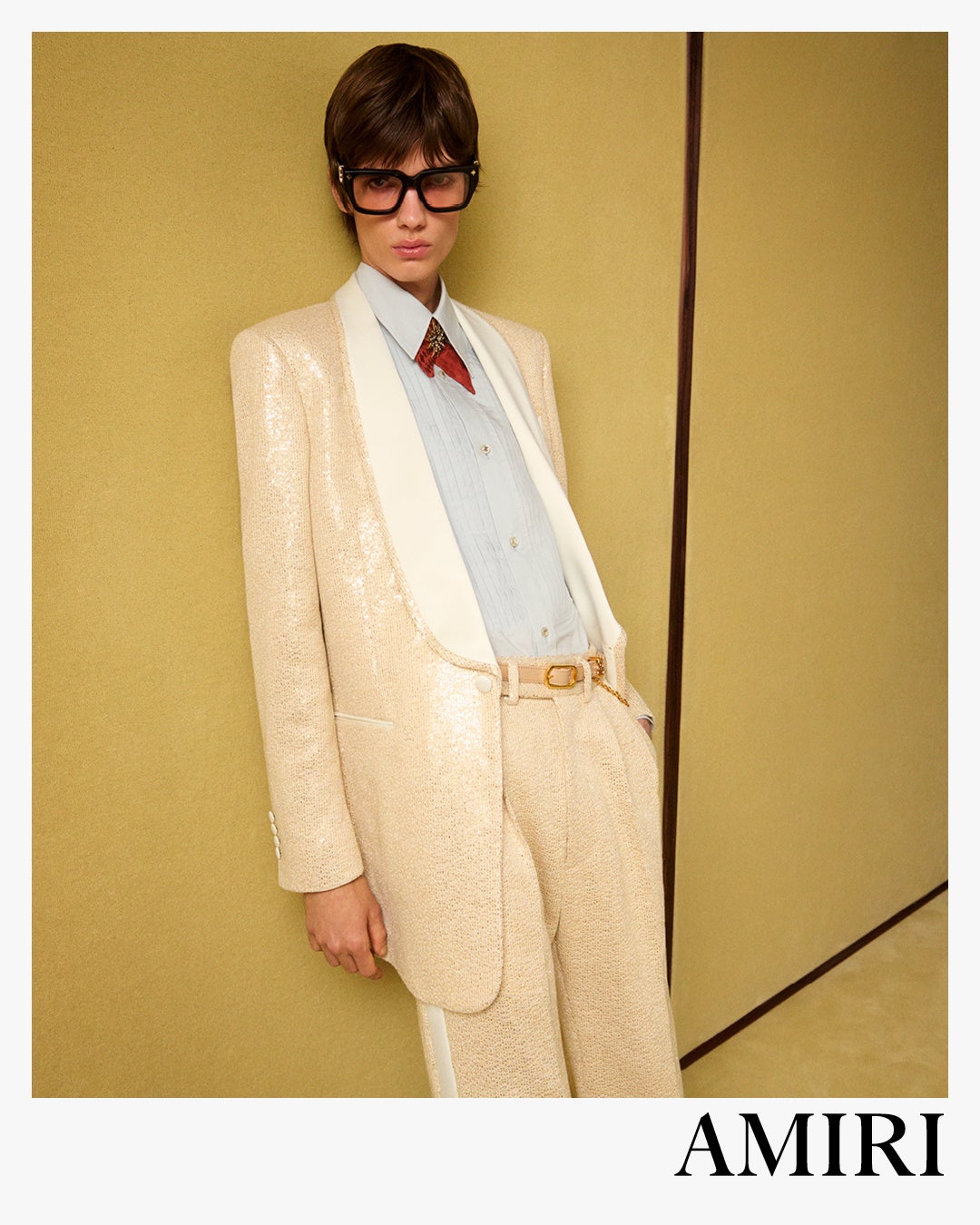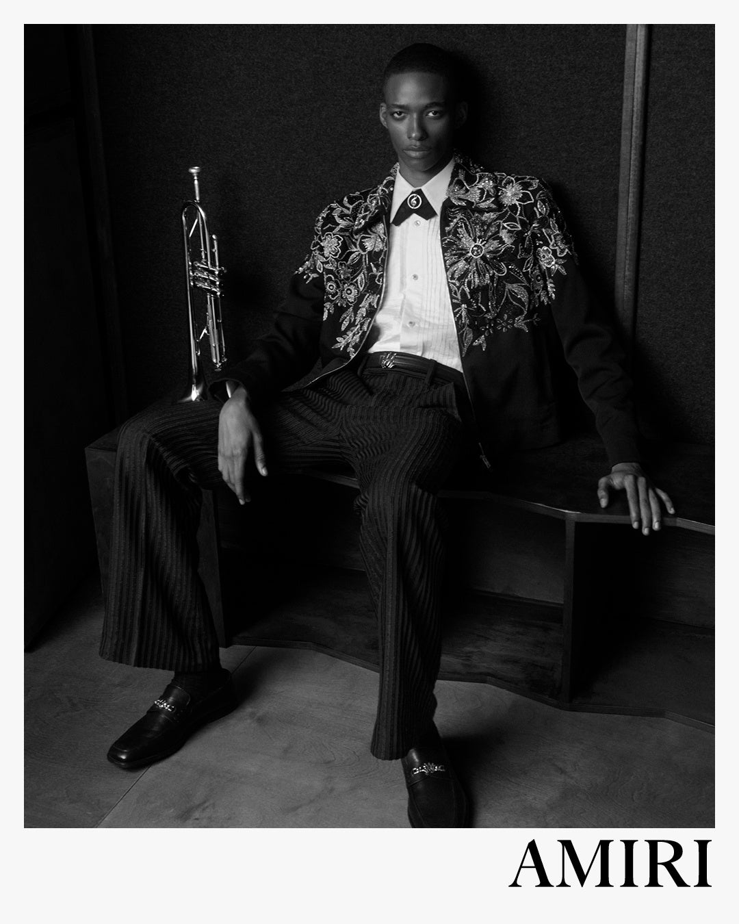 「モダン・ジャズのサウンドとアティチュードが、2025年春夏コレクションにインスピレーションを与えました。そしてこのキャンペーンは音楽を創作する過程のエネルギーと情熱を呼び起こします。私のキャリアはハリウッドのミュージシャンへ一点ものの衣装をデザインするところから始まりました。クリエイティビティを表現するために技術を駆使する興奮は、常にAMIRI(アミリ)のDNAの重要な部分を担っているのです。」- マイク・アミリ
