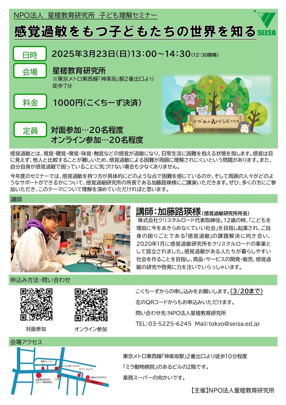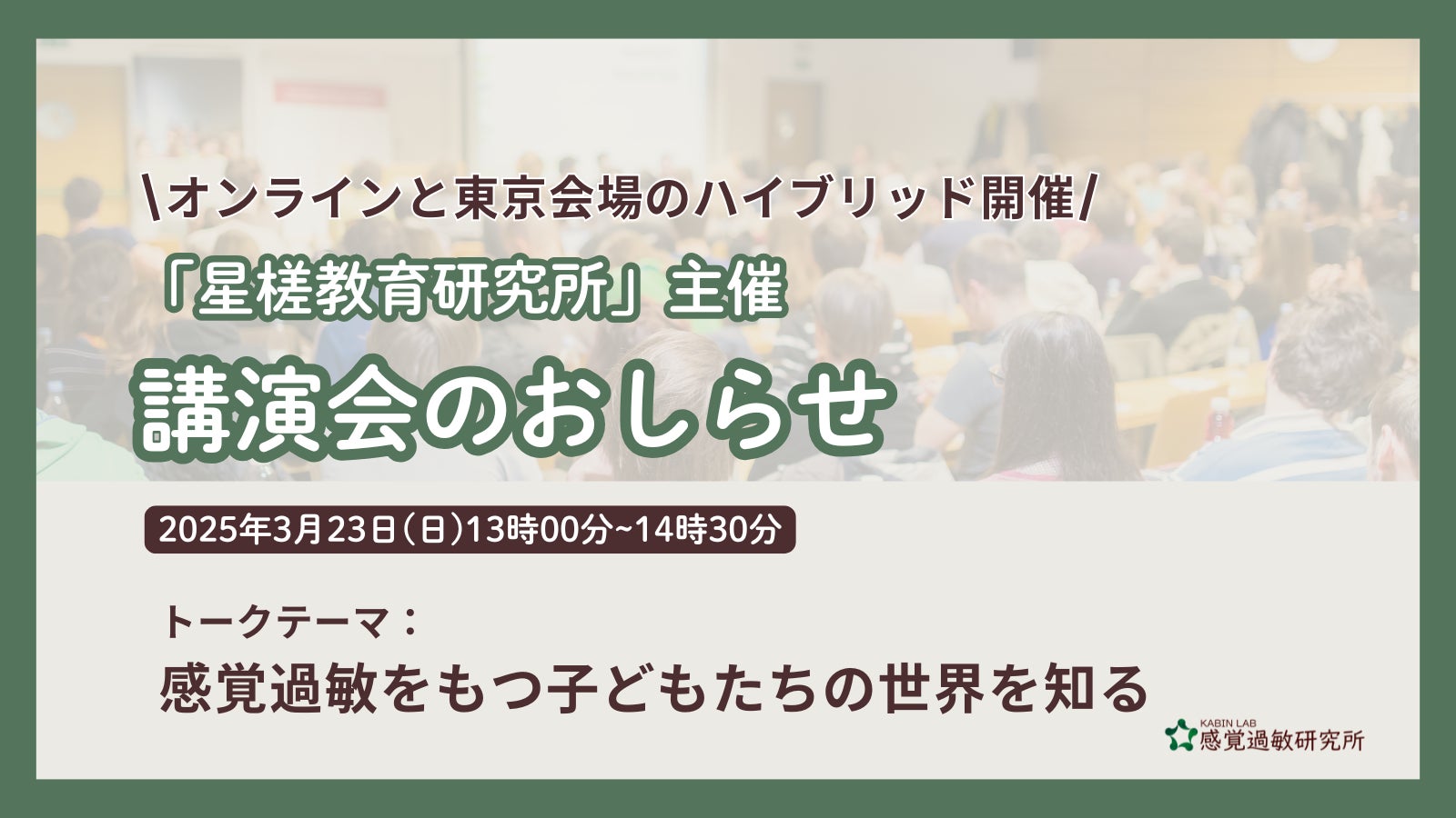 講演会のお知らせ:「感覚過敏をもつ子どもたちの世界を知る」/ 星槎教育研究所主催セミナーに感覚過敏研究所・加藤路瑛が登壇(2025年3月23日)