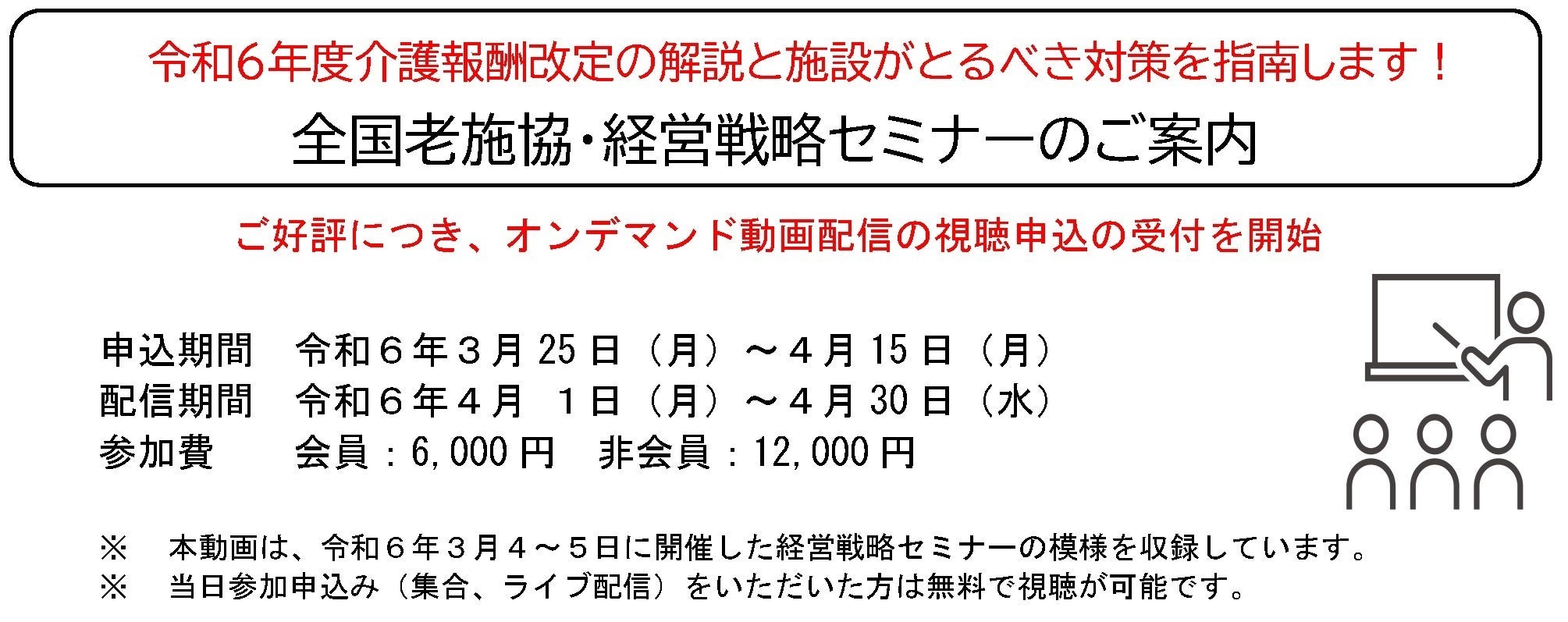 公益社団法人全国老人福祉施設協議会が報酬改定について詳解する「令和5年度経営戦略セミナー」における追加申込受付を開始