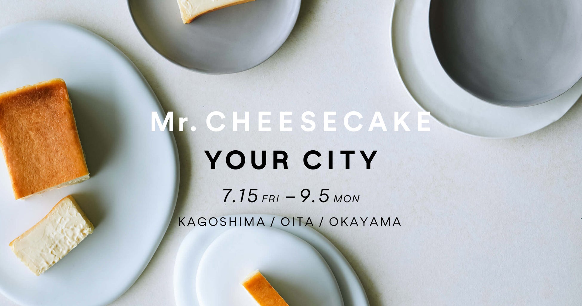 株式会社Mr. CHEESECAKE(本社:東京都港区 代表取締役:田村浩二)は、「Mr. CHEESECAKE YOUR CITY」と題し、2022年7月15日(金)から2022年末にかけて、全国各地にてポップアップストアを順次オープンします。第1弾では、鹿児島・大分・岡山の3県へ出店します。