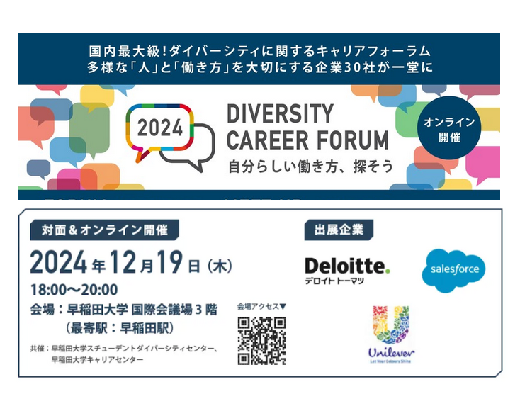 12月19日 早稲田大学にてMEET-UP開催!国内最大級のダイバーシティに関するキャリアフォーラム『DIVERSITY CAREER FORUM 2024』関連イベント
