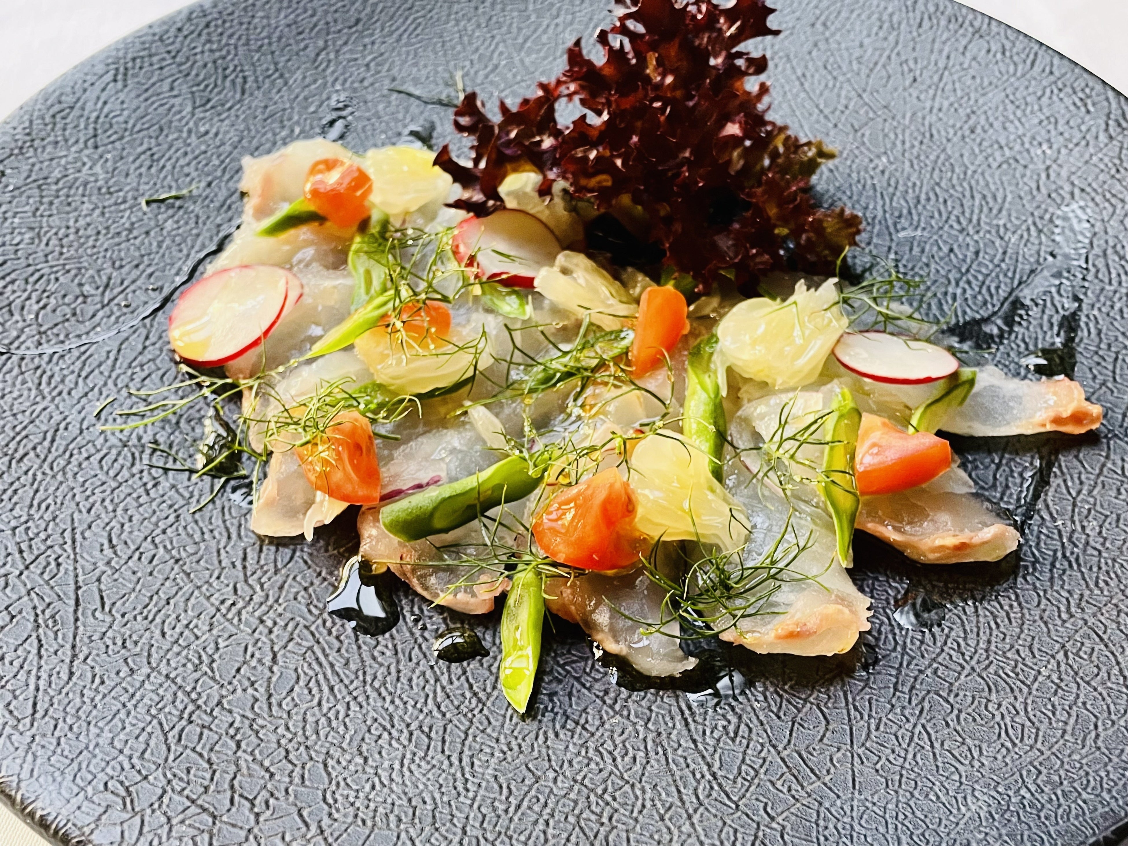 今回は野菜も加えたカルパッチョでさっぱりと召し上がっていただきます。